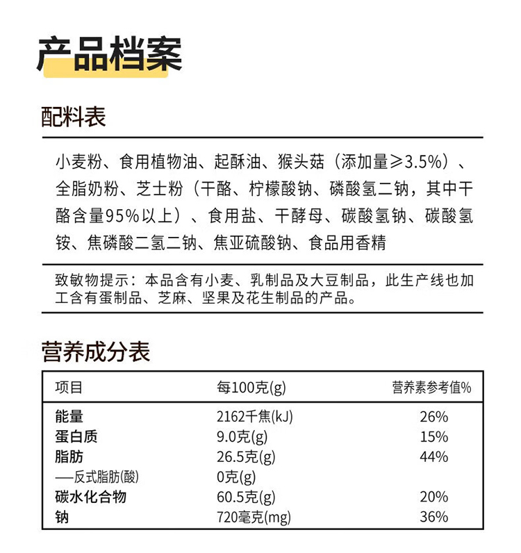 商品名称:江中食疗江中猴姑饼干礼盒816g