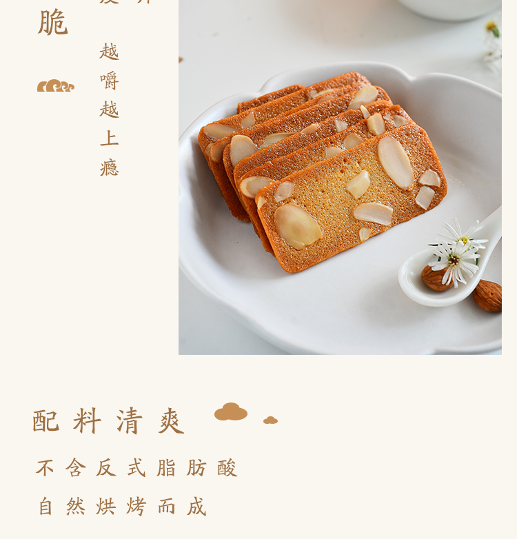 扁桃仁薄脆片 坚果杏仁小饼干糕点零食小吃经典奶香油炸135/g/盒