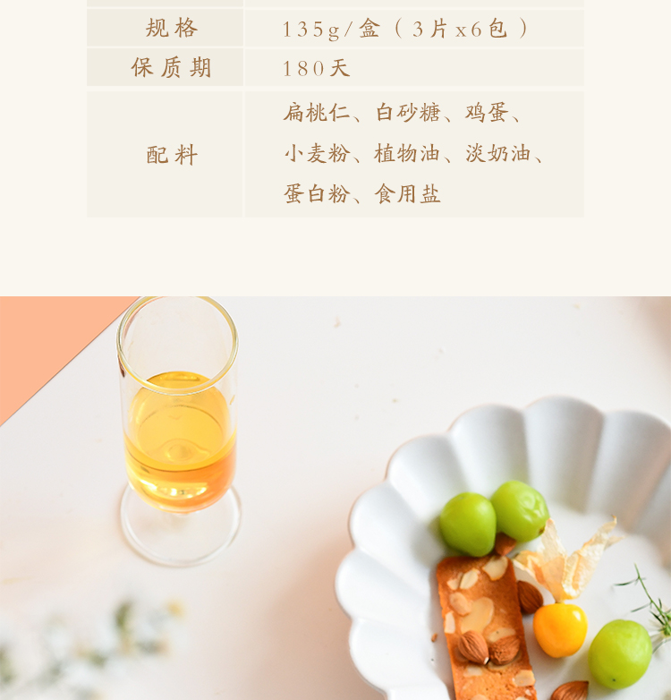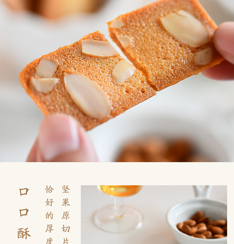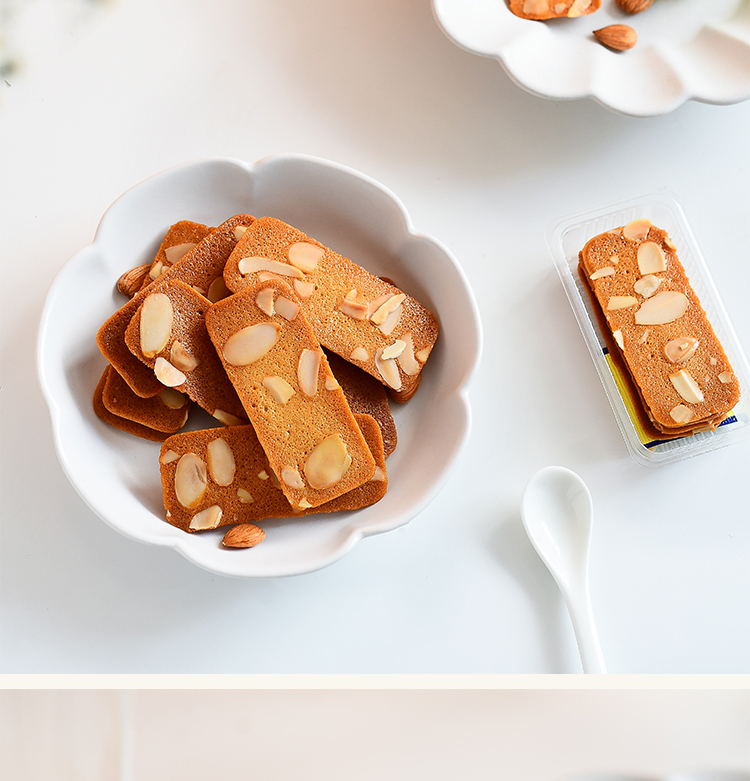商品名称:扁桃仁薄脆片 坚果杏仁小饼干糕点零食小吃经典奶香油炸135/g/盒