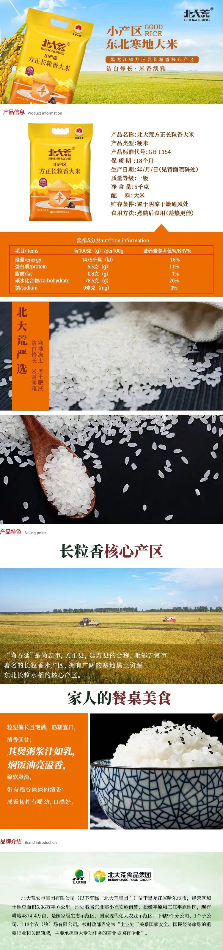 商品名称:北大荒方正长粒香大米5kg 新老包装随机不接受指定
