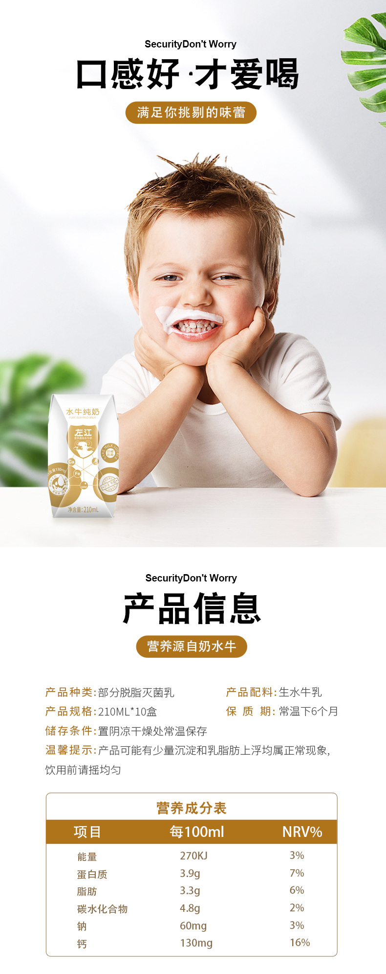 商品名称:左江水牛纯牛奶整箱210ml*10盒