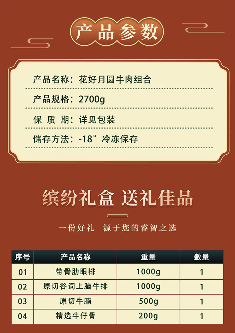 商品名称:【顺丰配送】赤豪花好月圆牛肉组合2700g