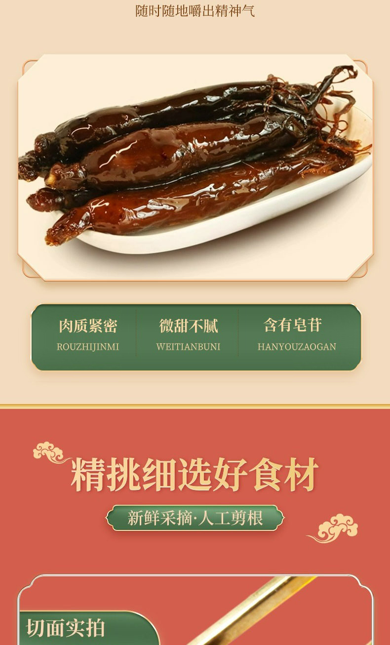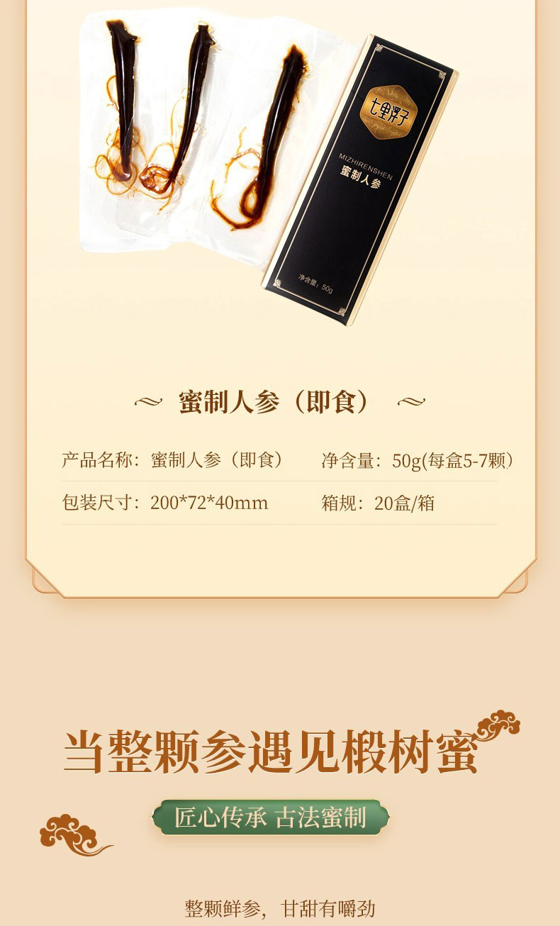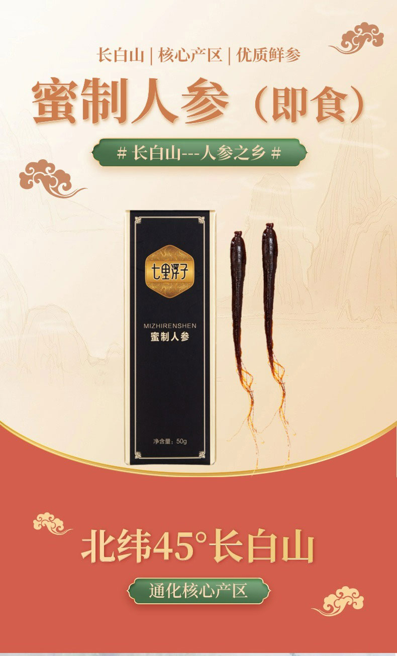 商品名称:七里浮子即食蜜制人参50g
