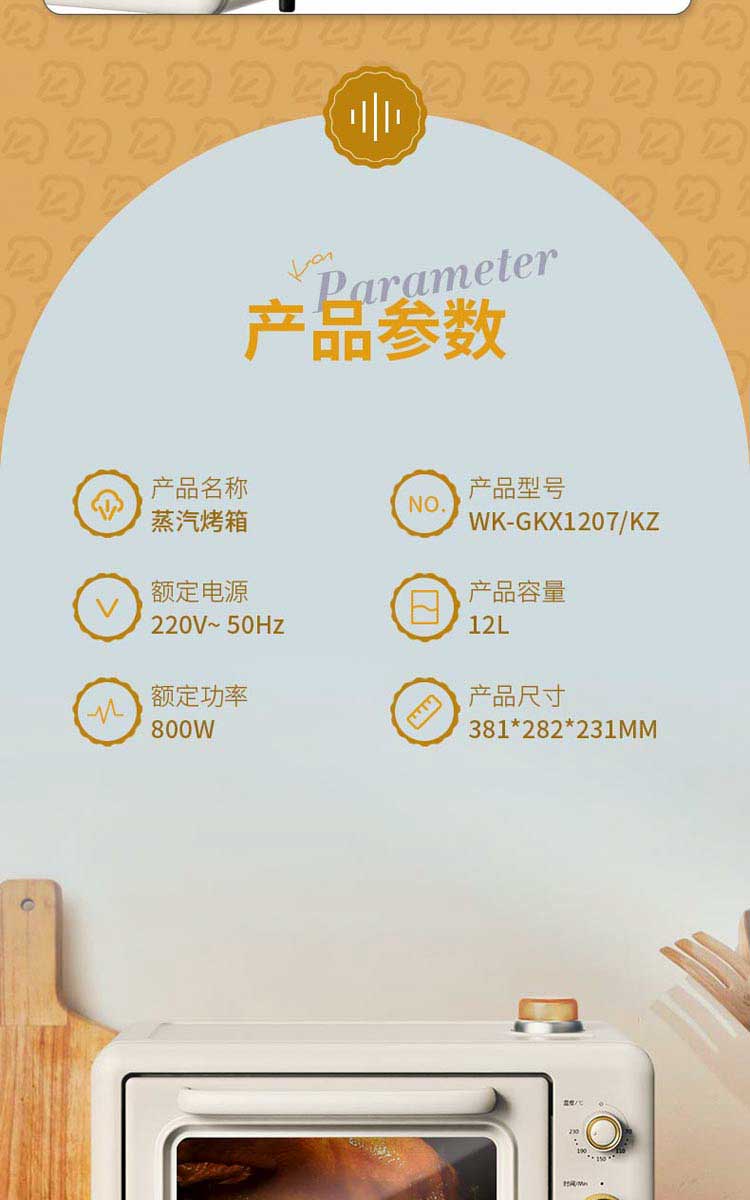 商品名称:WORLDKITCHEN/康宁12升蒸汽烤箱WK-GKX1207/KZ
