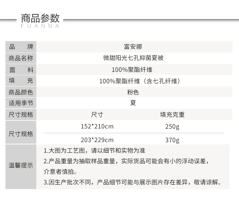 商品名称:FUANNA/富安娜微甜阳光七孔抗菌夏被