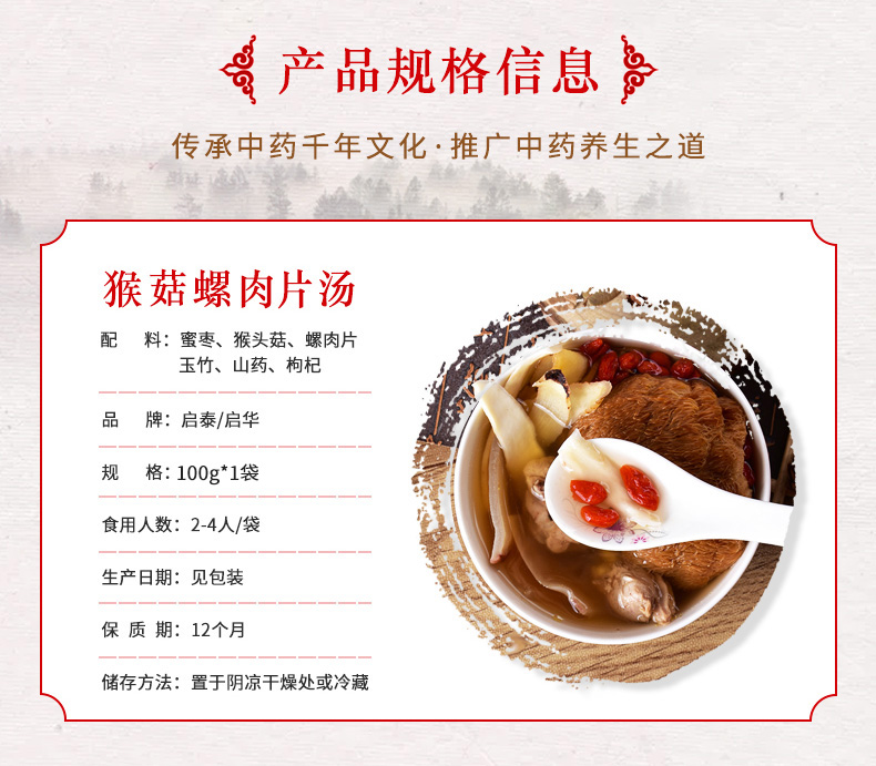 商品名称:啟泰猴头菇螺肉片汤料100g*3包