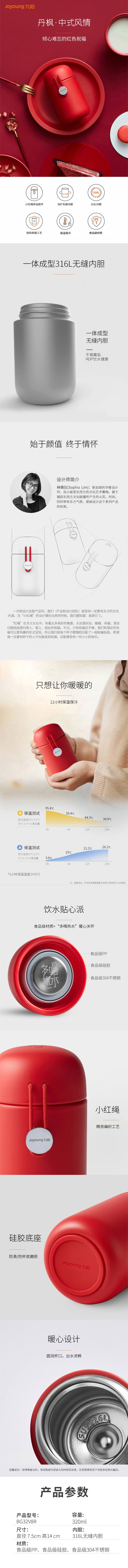 商品名称:Joyoung/九阳320毫升小红绳保温杯BG32V8R