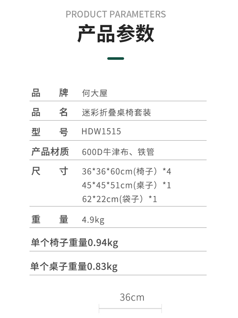 商品名称:Hodtown/何大屋迷彩折叠桌椅套装HDW1515