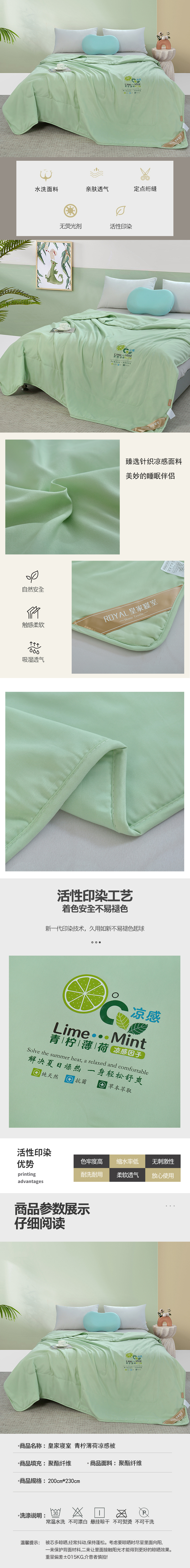 商品名称:ROYAL/皇家寝室青柠薄荷凉感被200*230cm 1300g