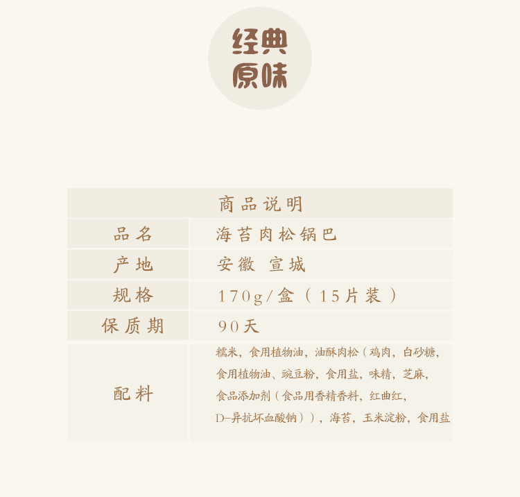 商品名称:肉松海苔锅巴170g/盒
