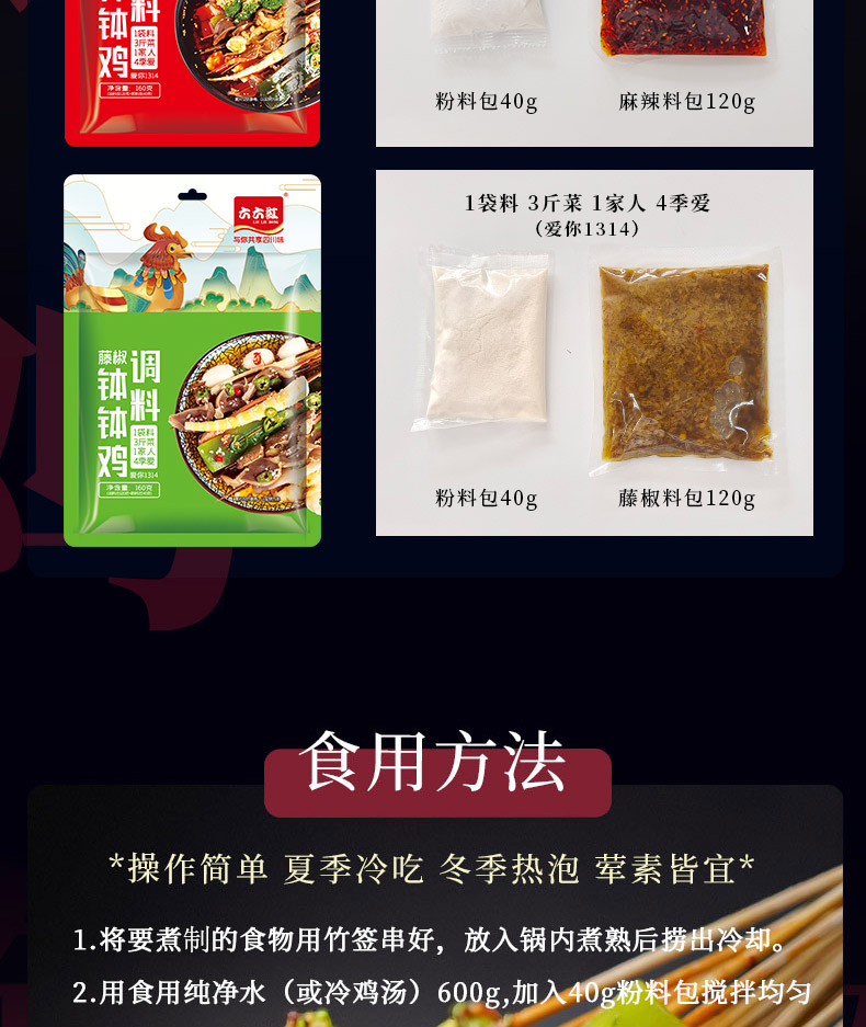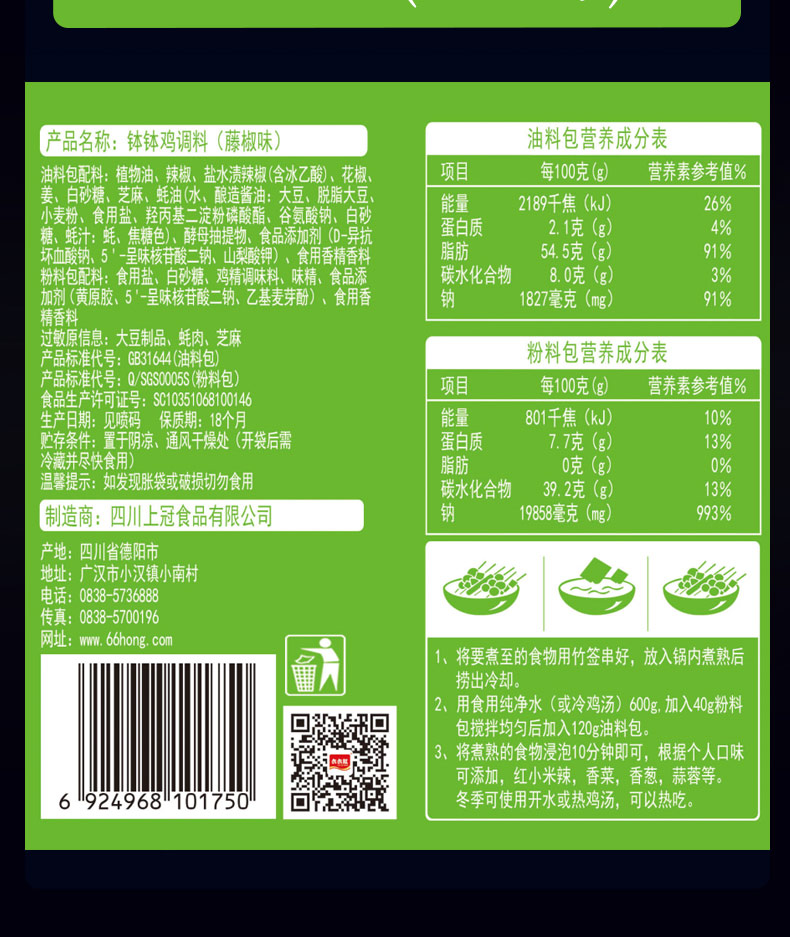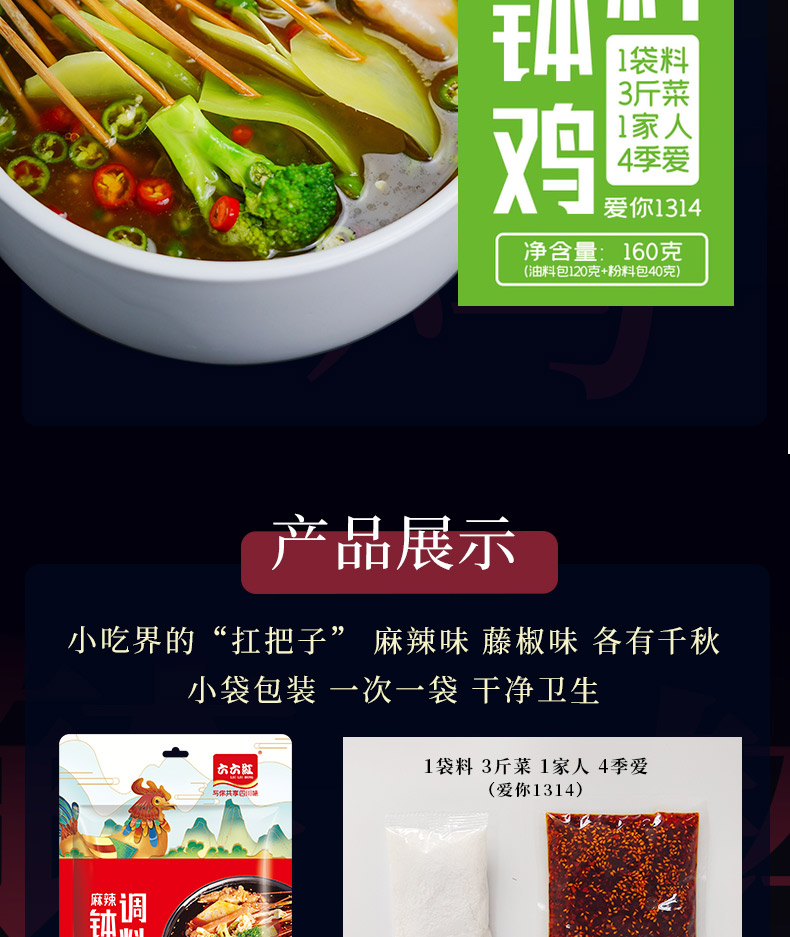 商品名称:六六红藤椒钵钵鸡调料160g*2袋