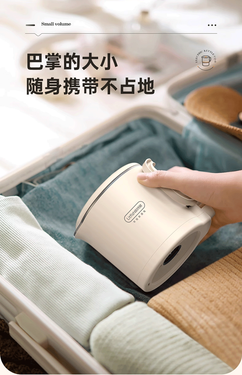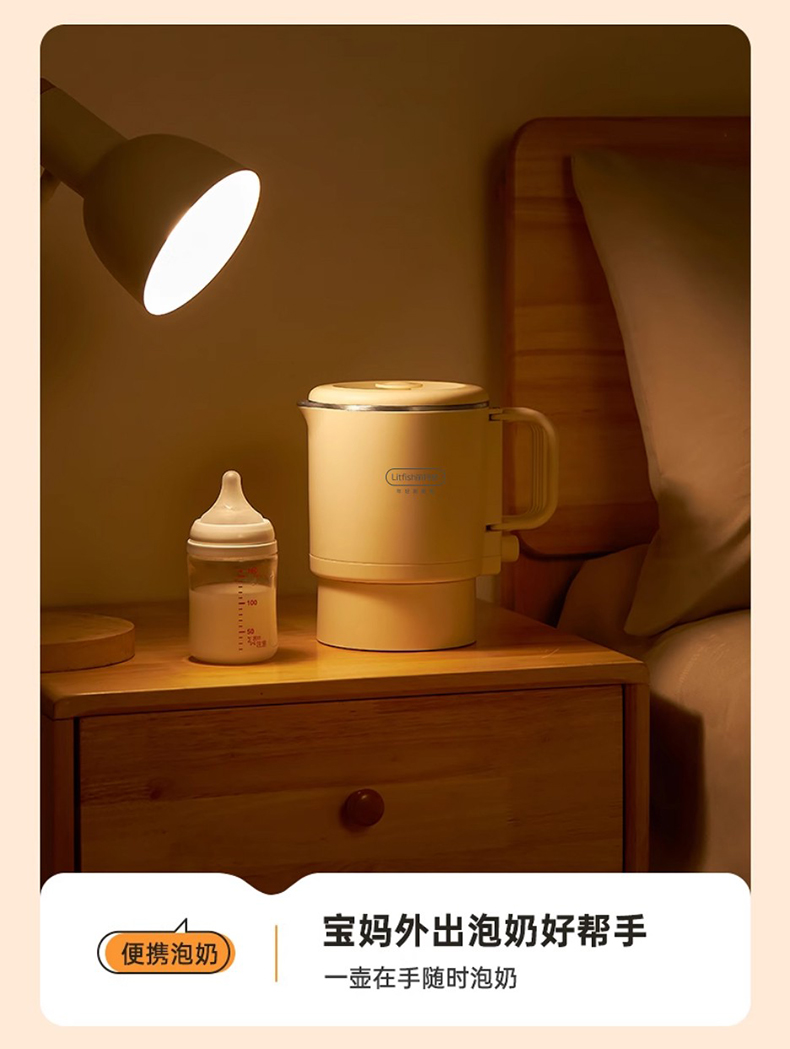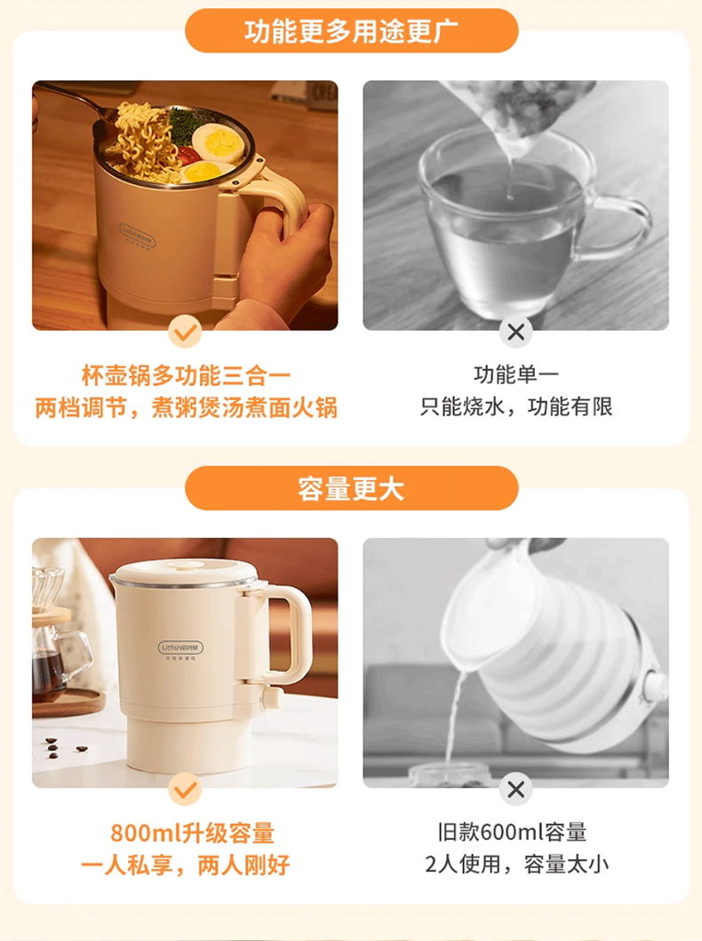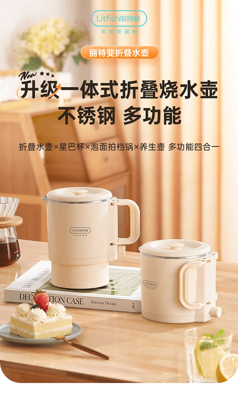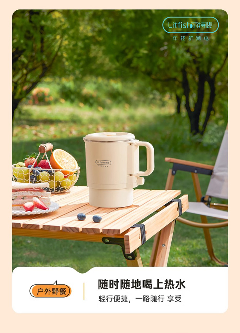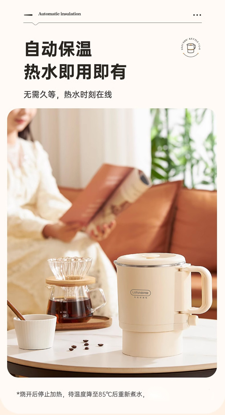Litfish/丽特斐800毫升多功能不锈钢折叠电水壶CQ-8