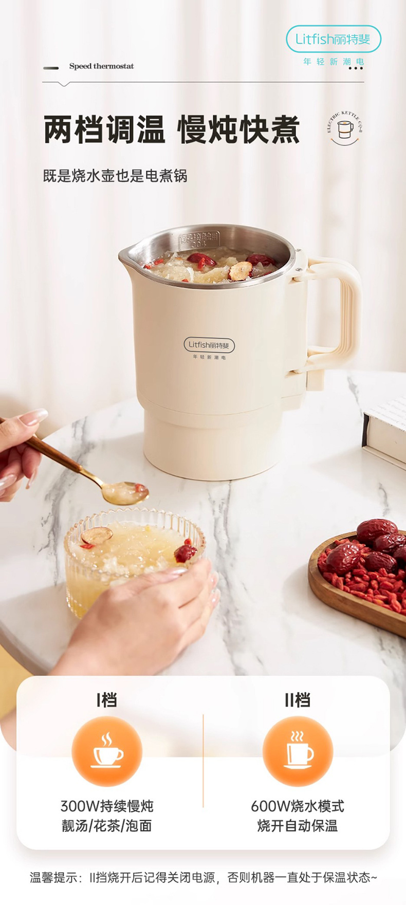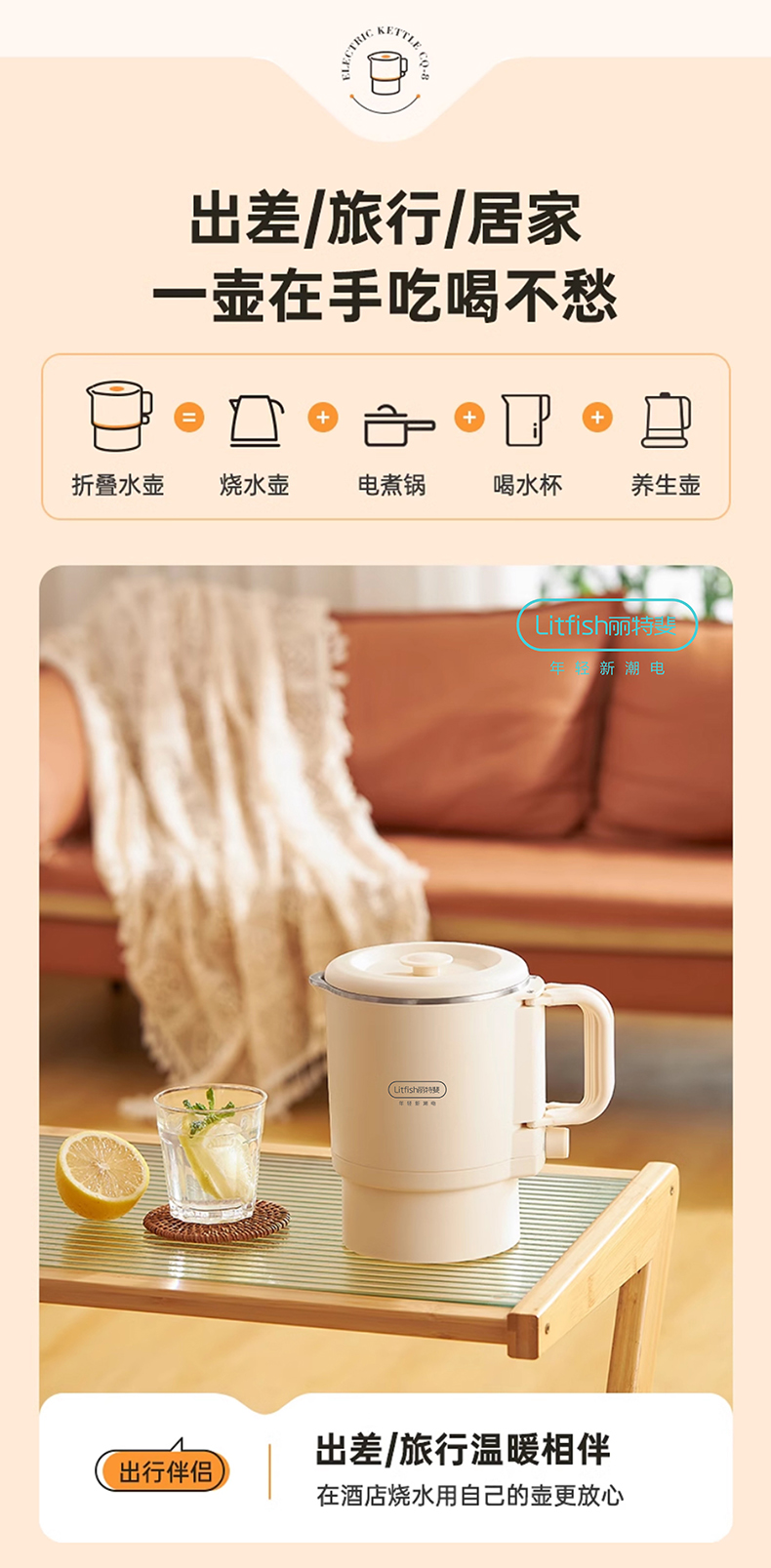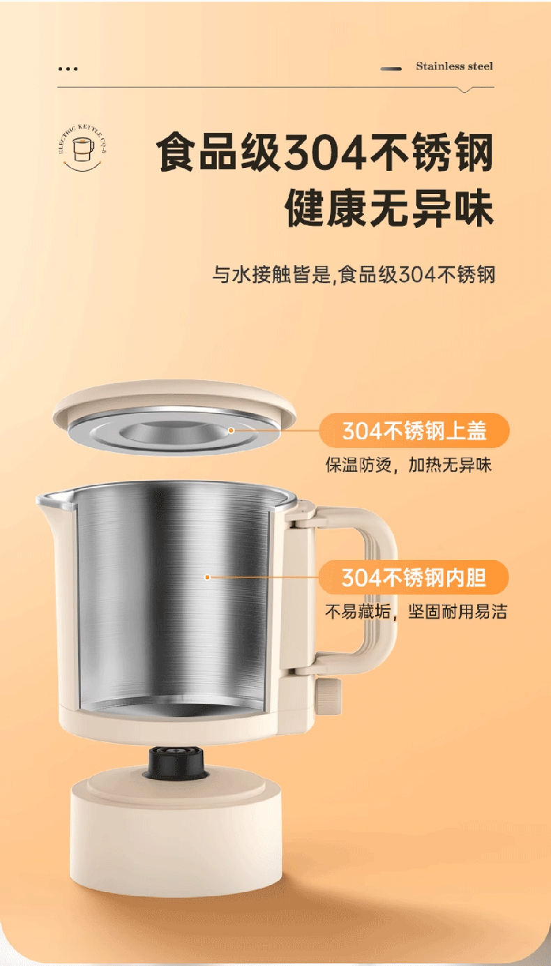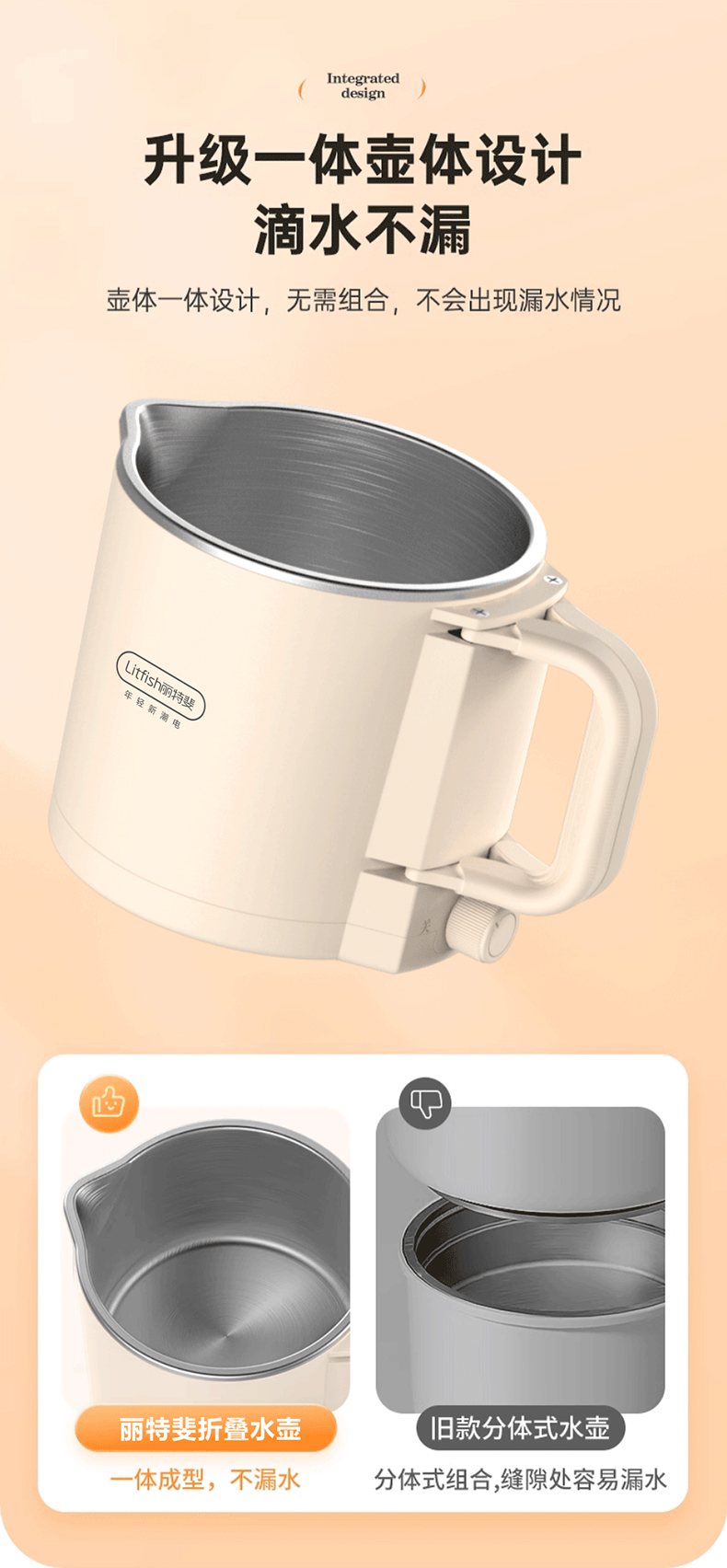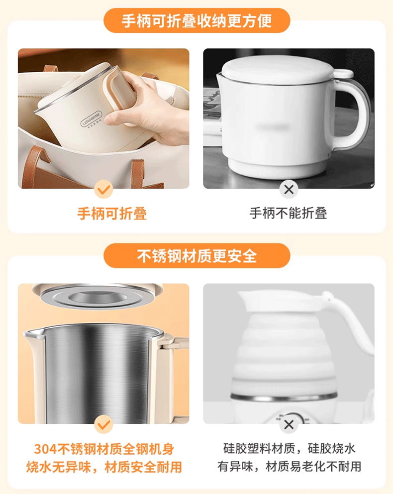 Litfish/丽特斐800毫升多功能不锈钢折叠电水壶CQ-8