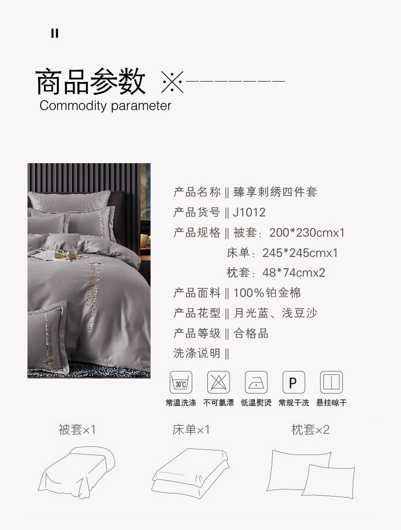 商品名称:M-RANDON/美缘登臻享铂金棉刺绣床品四件套200*230cm