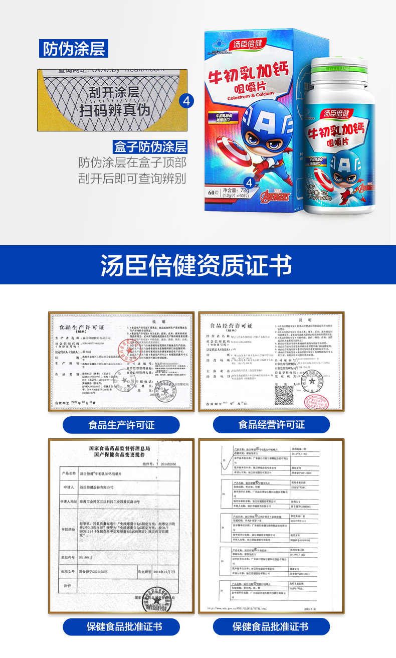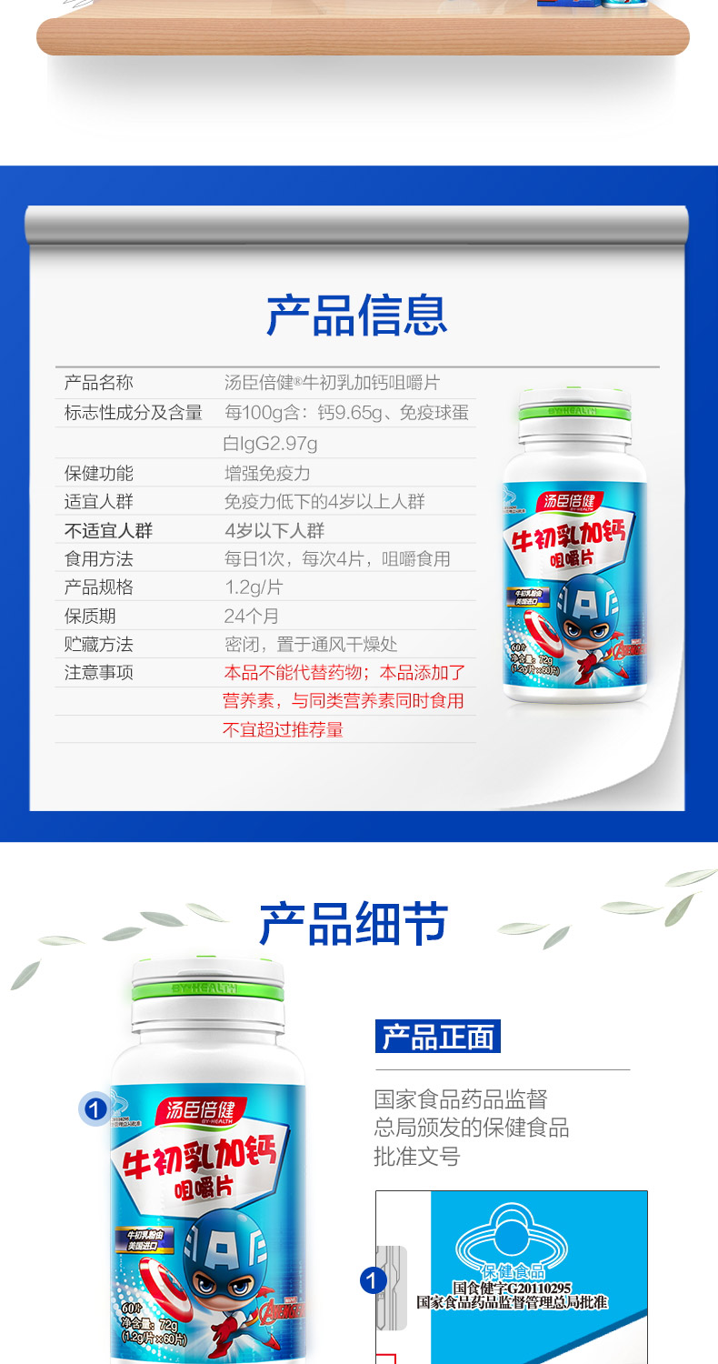 商品名称:牛初乳加钙咀嚼片儿童钙片牛奶钙60片
