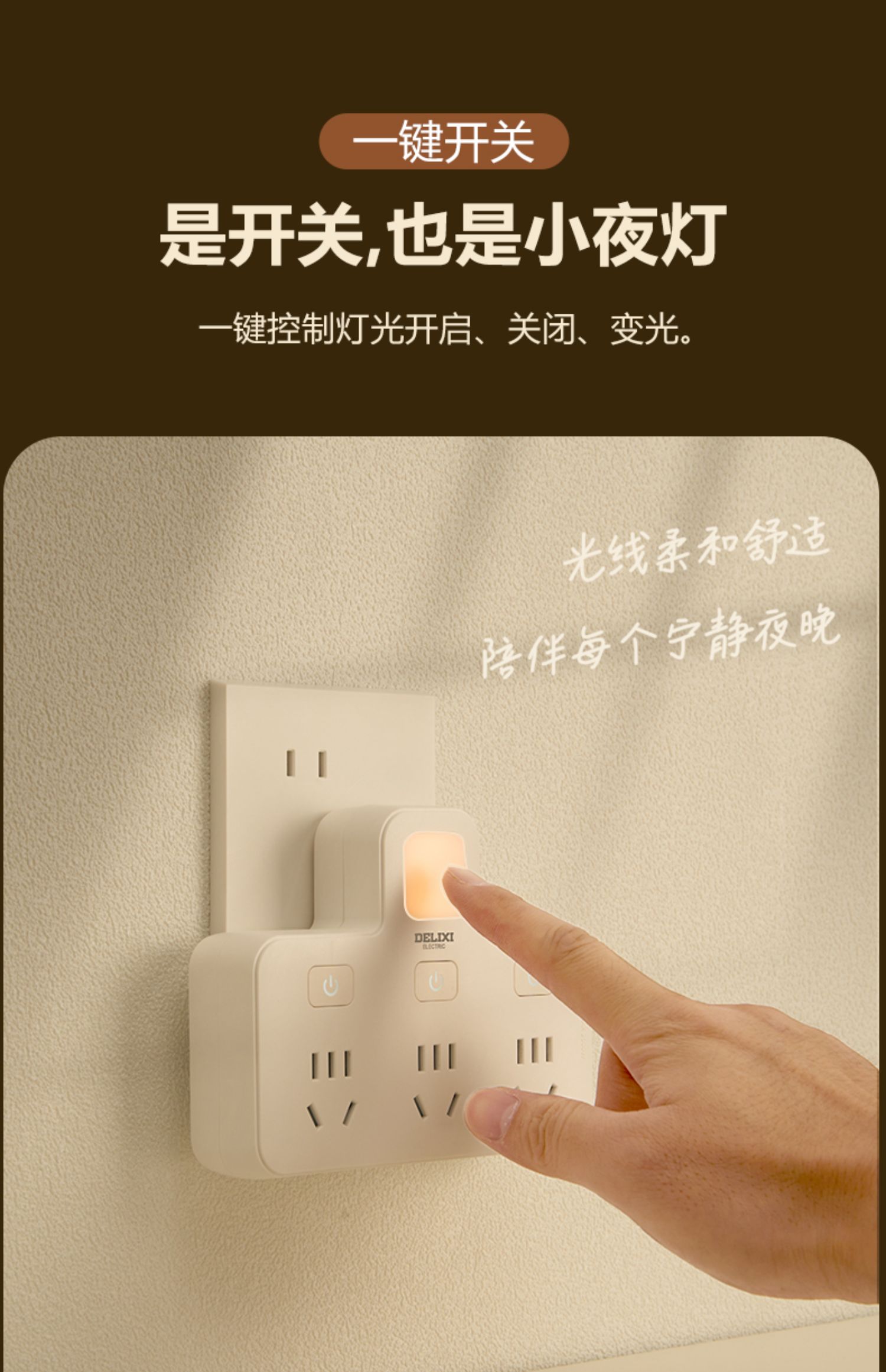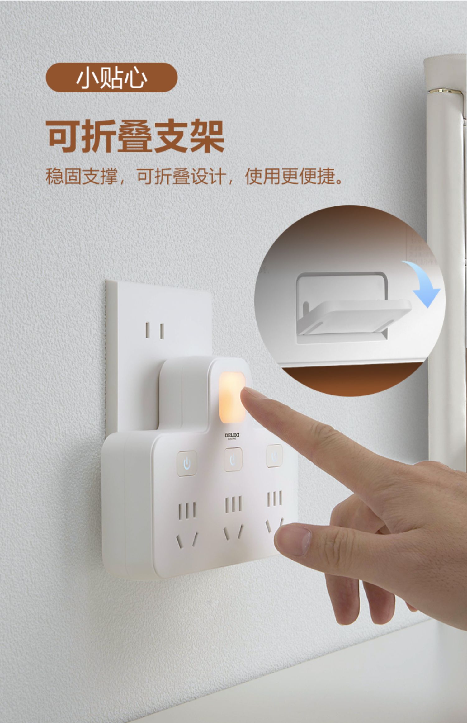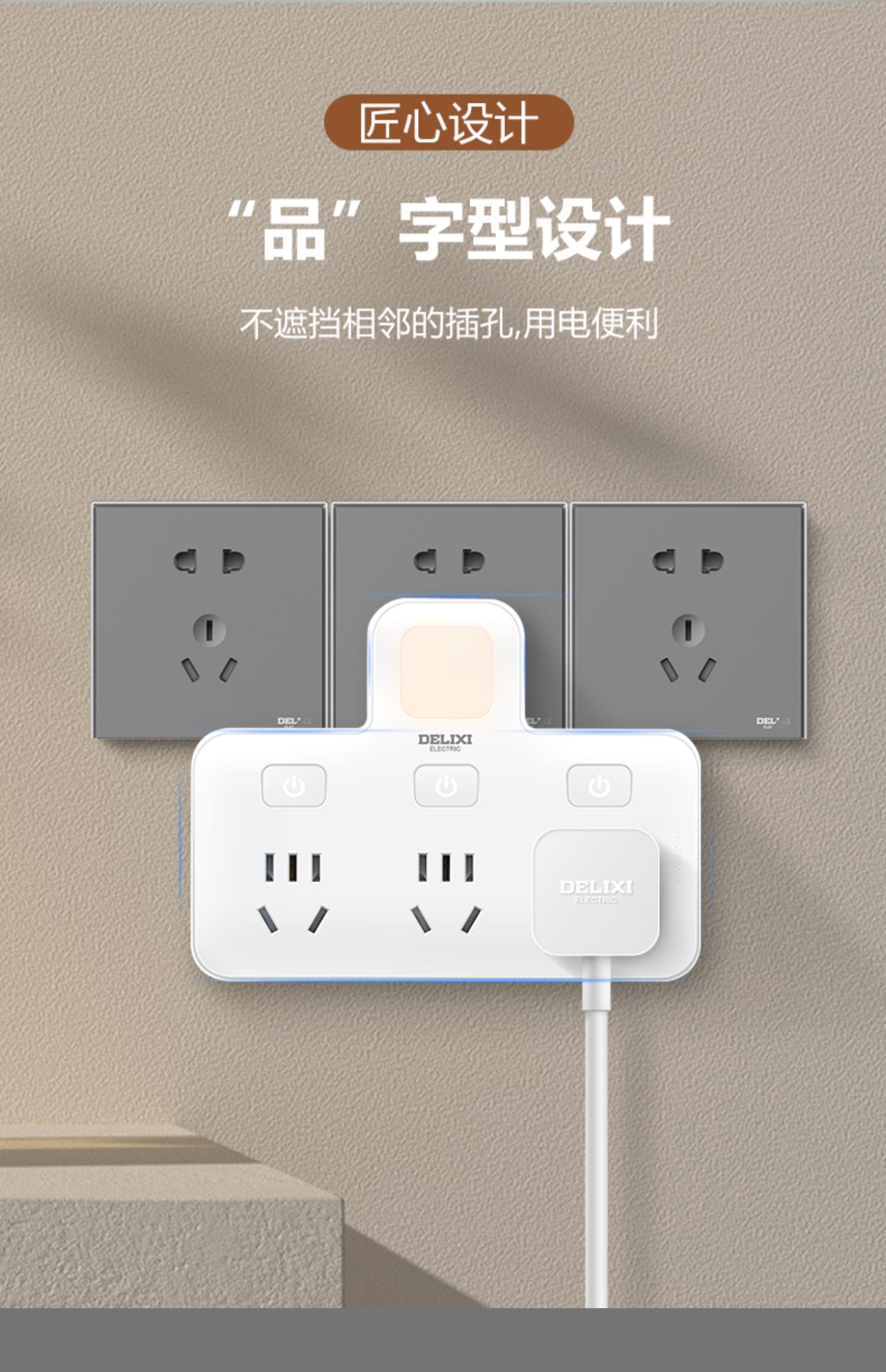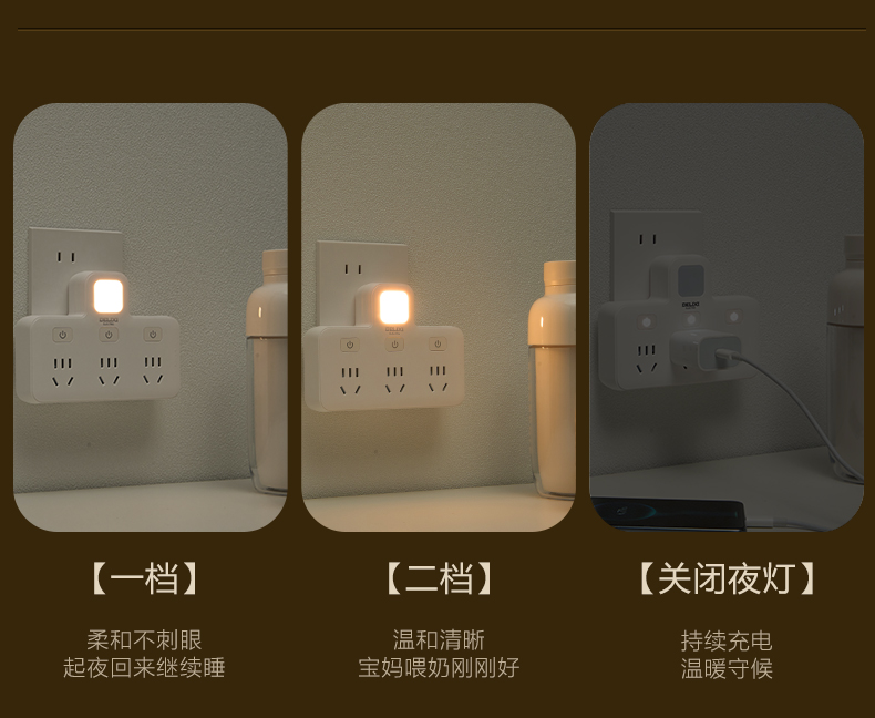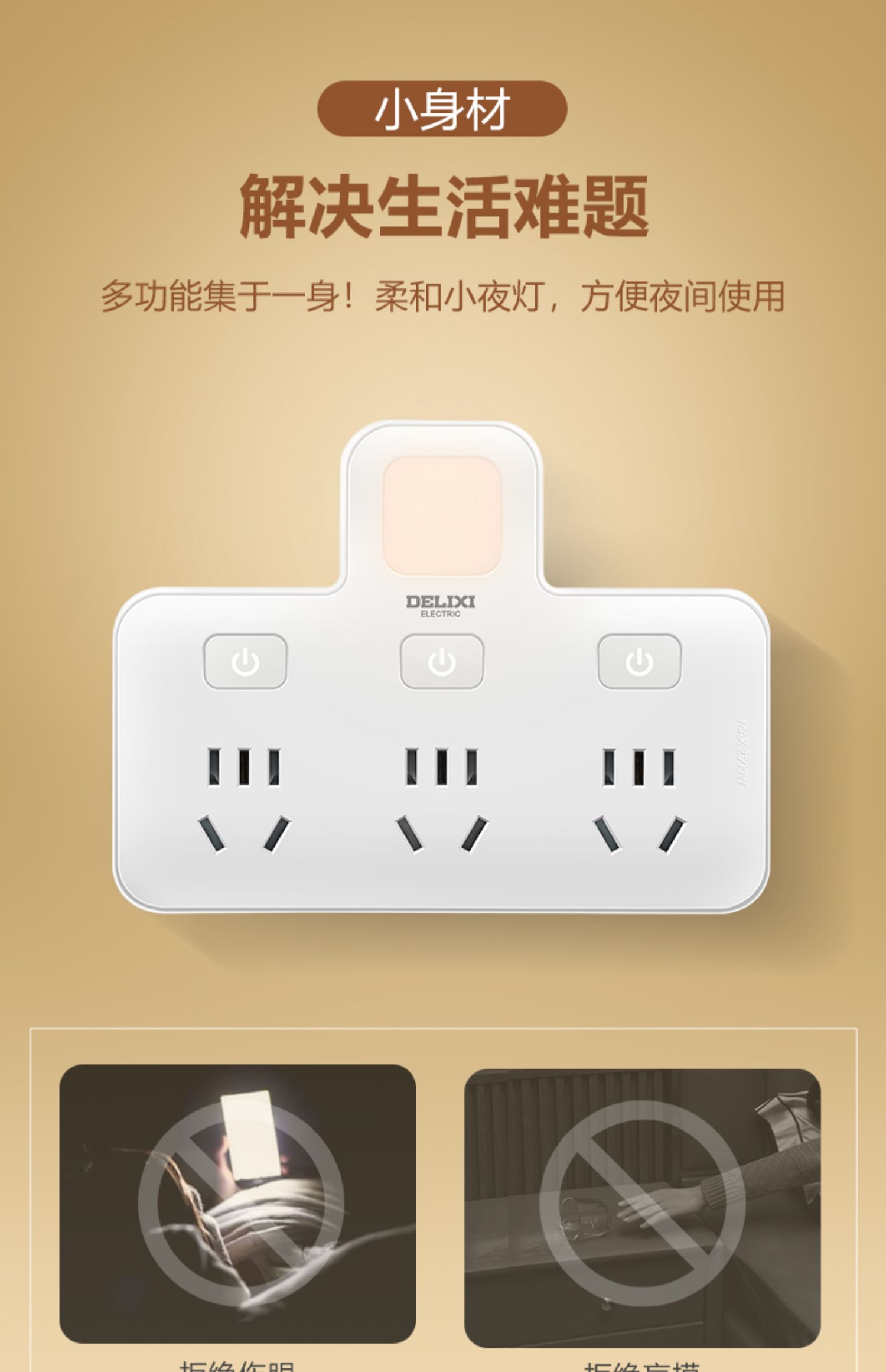 德力西CD98Z-B系列小夜灯品字形电插排CD98Z-B3K3XD/P