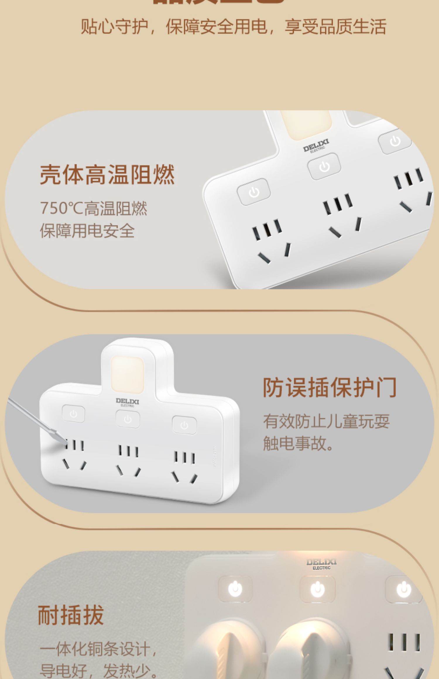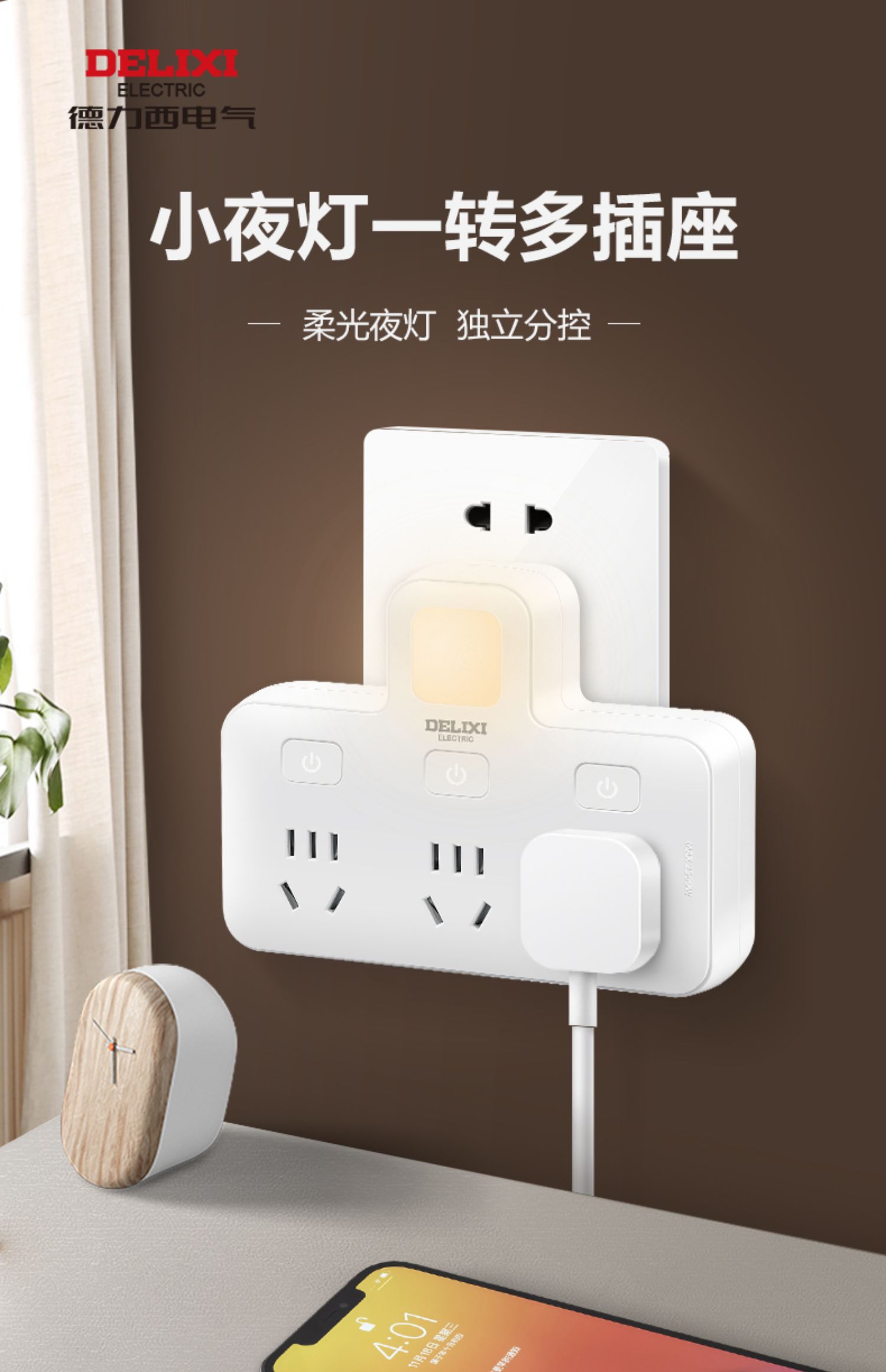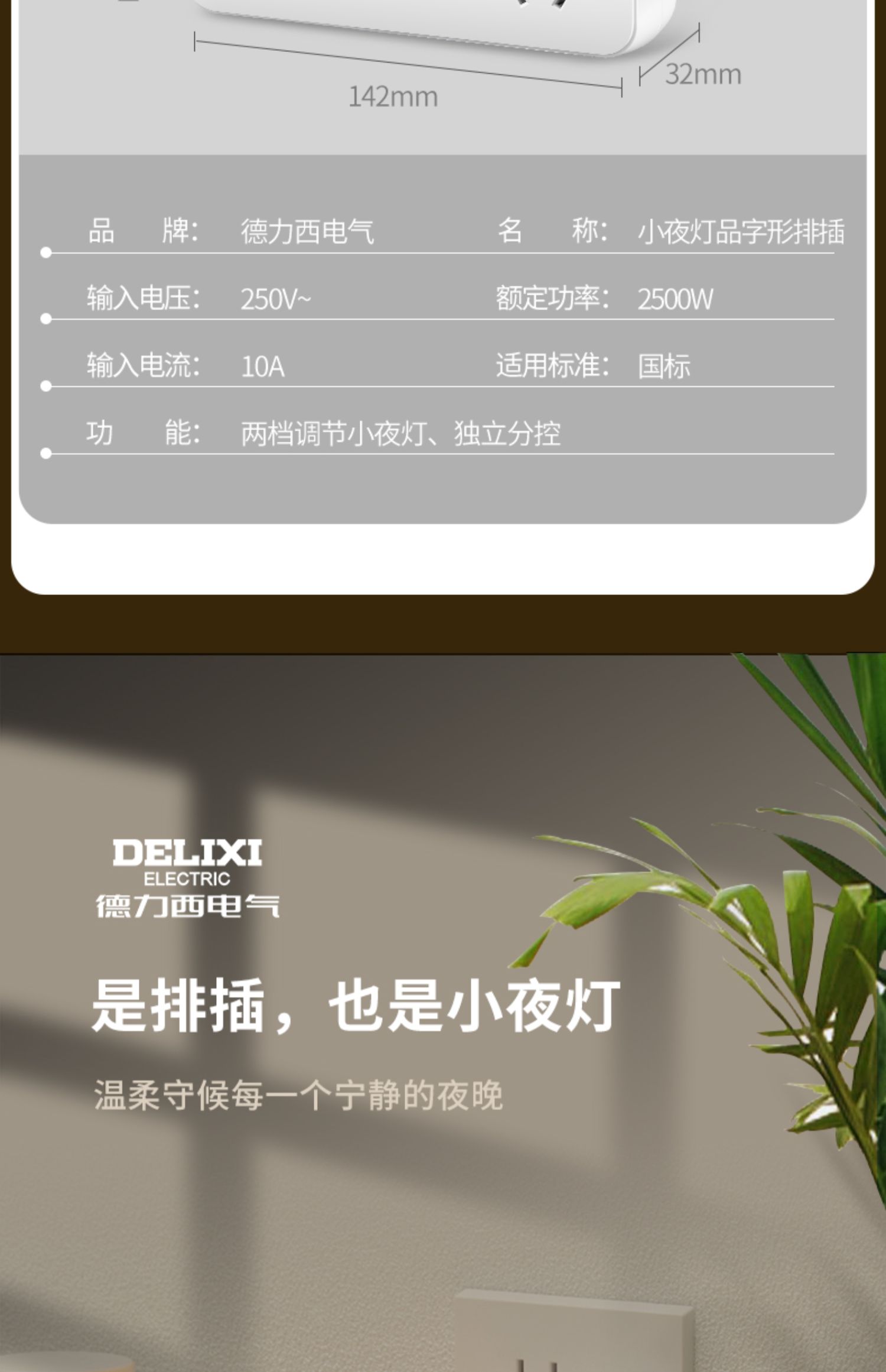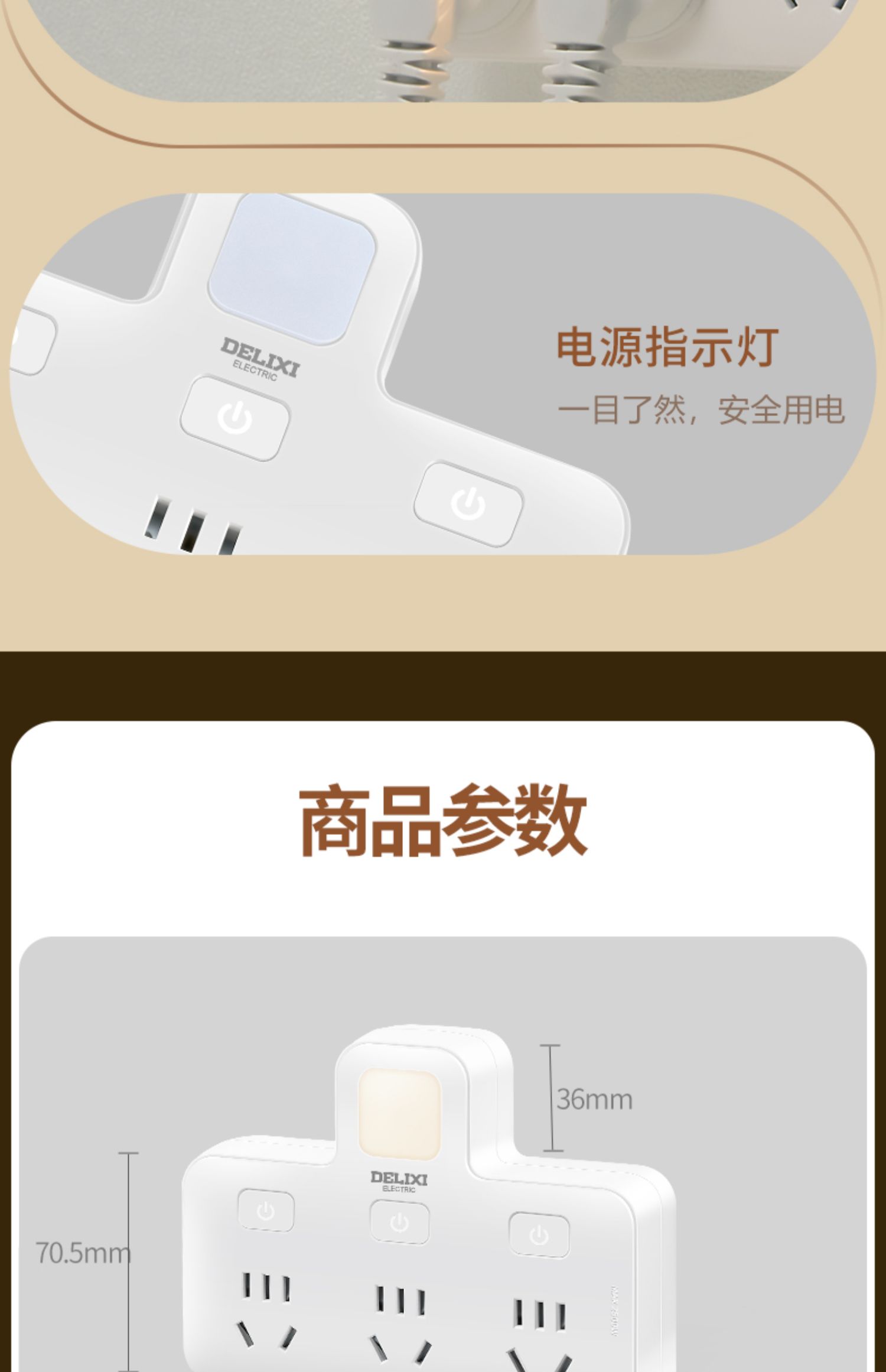 商品名称:德力西CD98Z-B系列小夜灯品字形电插排CD98Z-B3K3XD/P