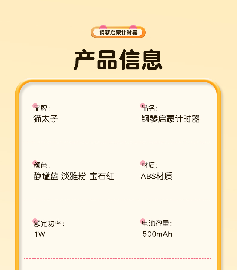 商品名称:猫太子钢琴启蒙计时器