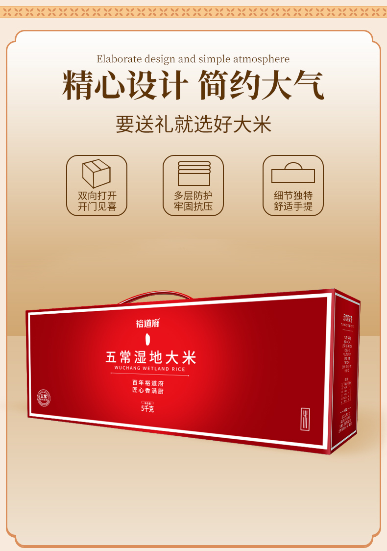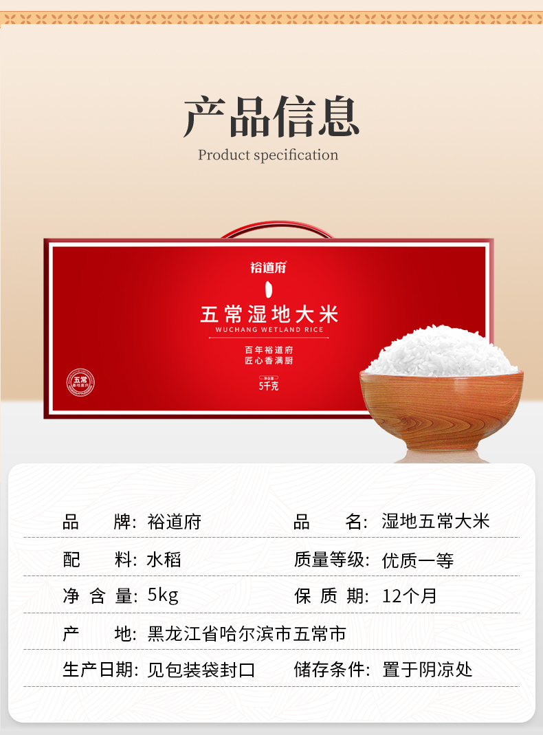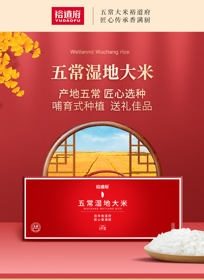 商品名称:裕道府五常湿地大米红色礼盒5kg