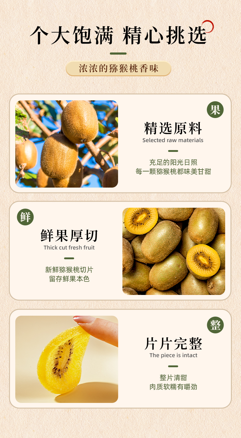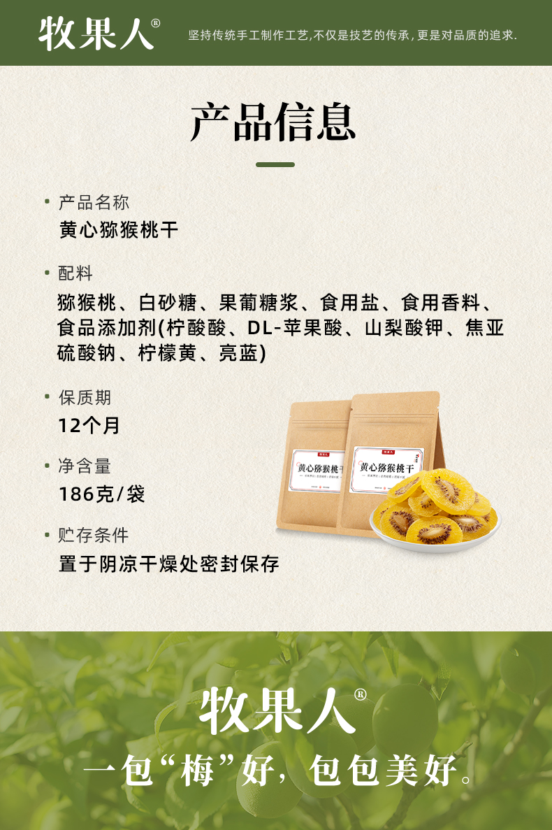 商品名称:牧果人黄心猕猴桃干186g*4袋