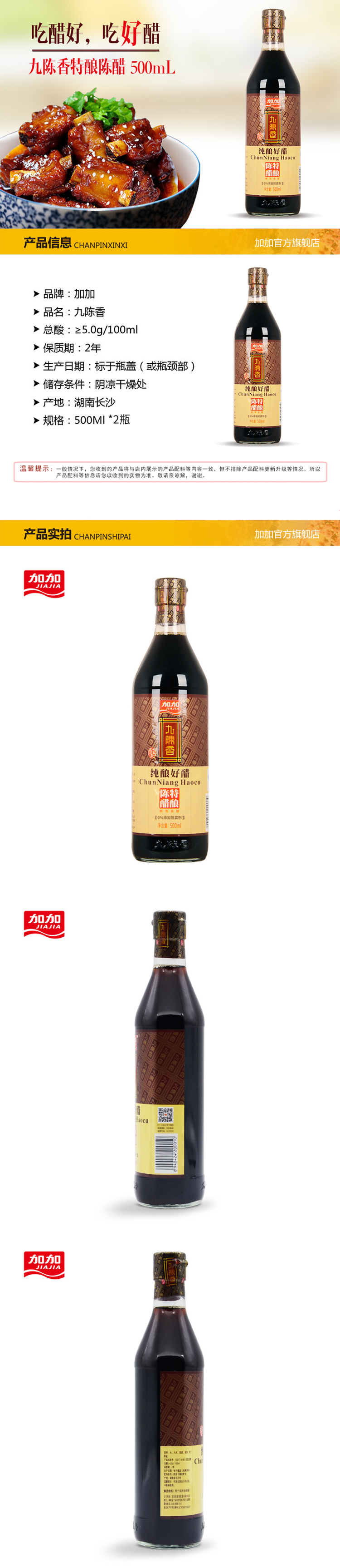 商品名称:JIAJIA/加加九陈香醋500ml*2瓶