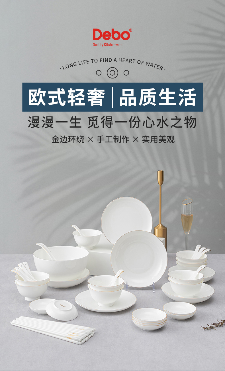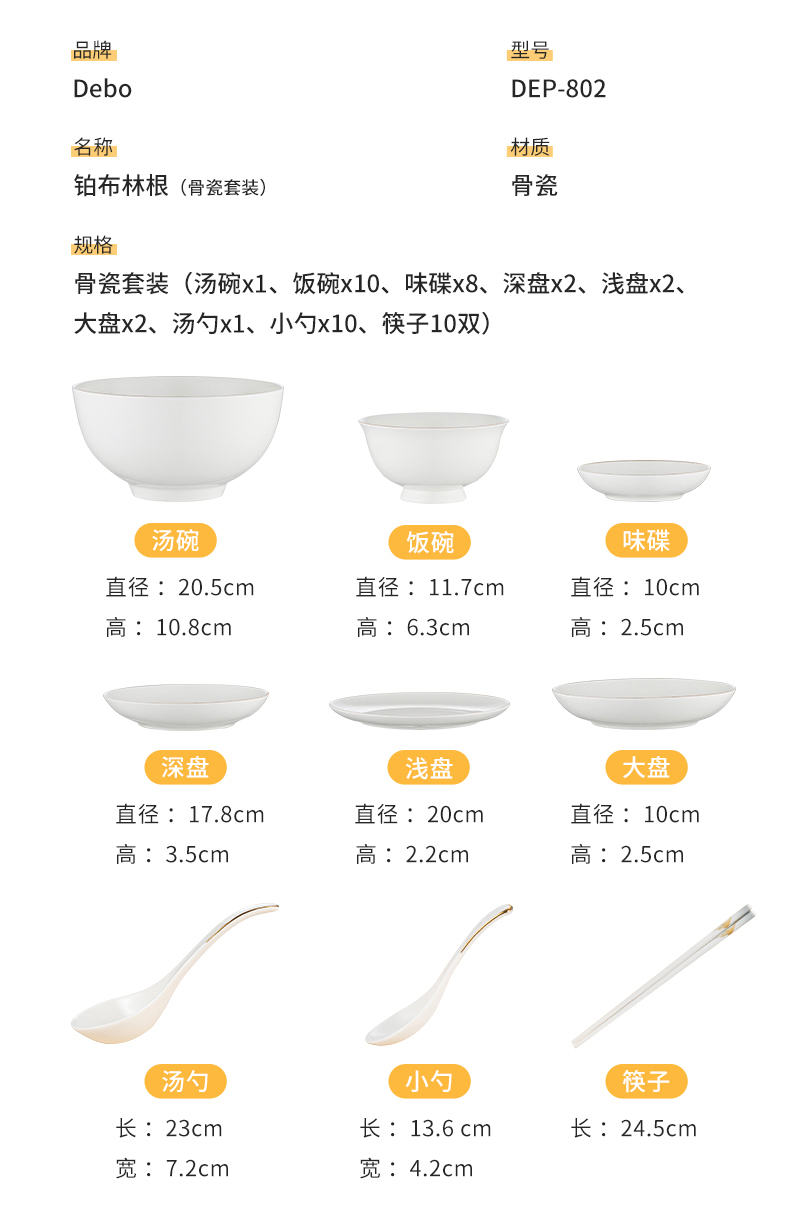 商品名称:Debo/德铂铂布林根骨瓷陶瓷餐具套装46件套DEP-802