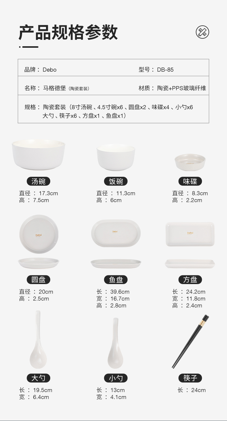 商品名称:Debo/德铂马格德堡陶瓷餐具28件套套装DB-85