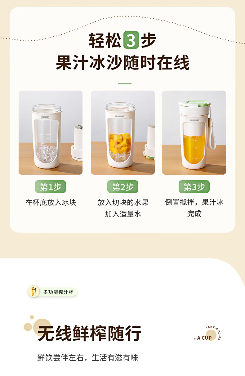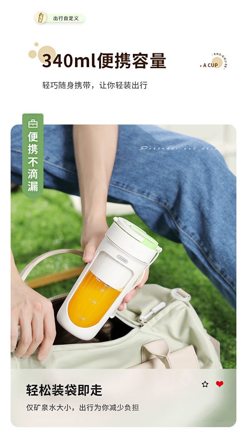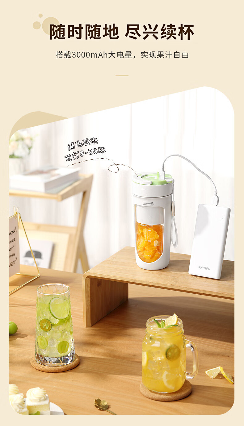 商品名称:Litfish/丽特斐340毫升无线便携果汁机GZJ08