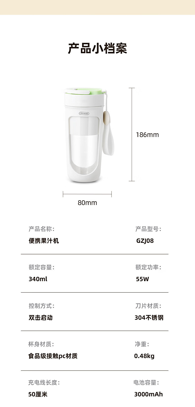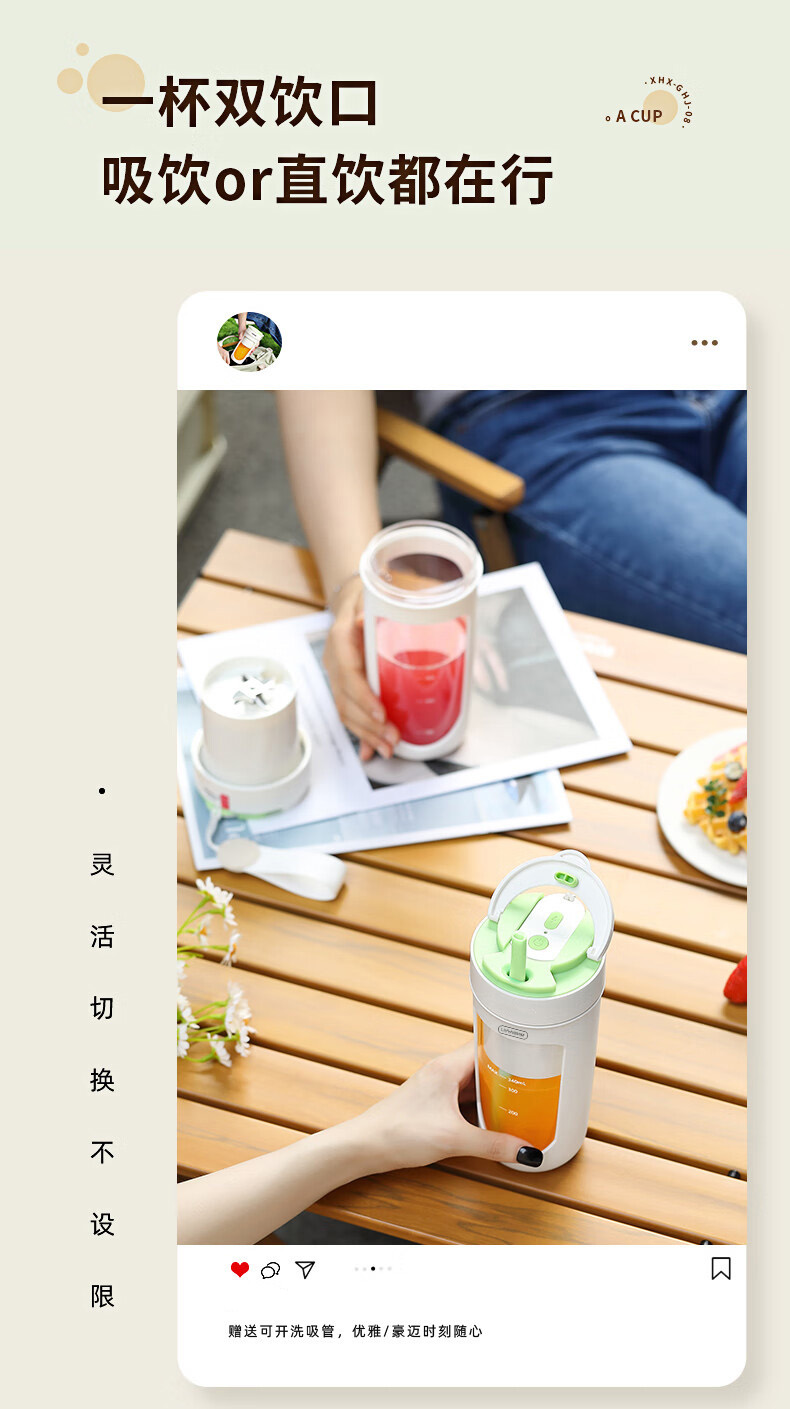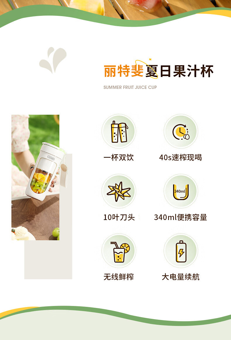 商品名称:Litfish/丽特斐340毫升无线便携果汁机GZJ08