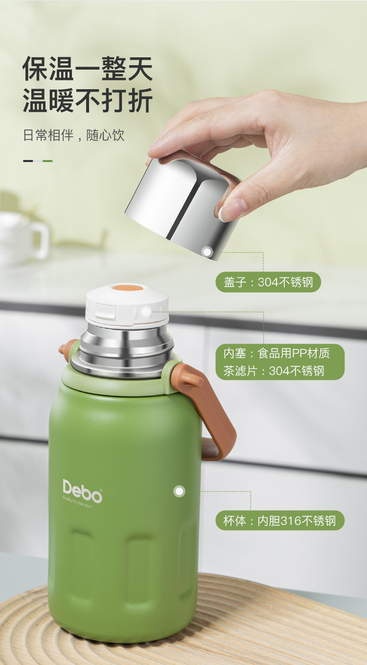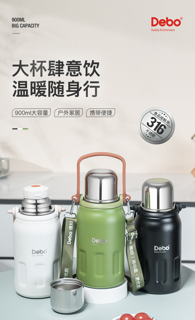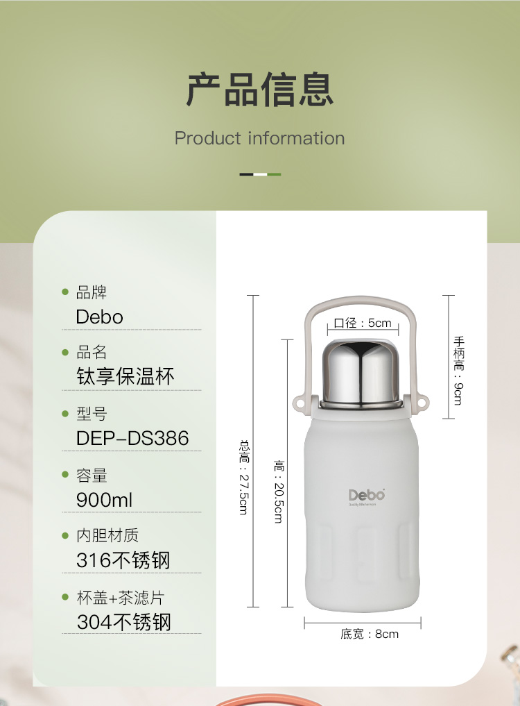 商品名称:Debo/德铂900毫升钛享真空保温杯DEP-DS386