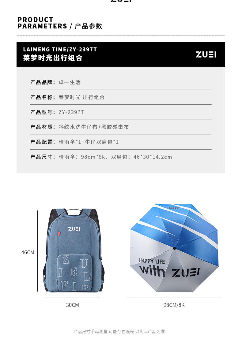 商品名称:卓一生活莱梦时光出行包伞组合ZY-2397T