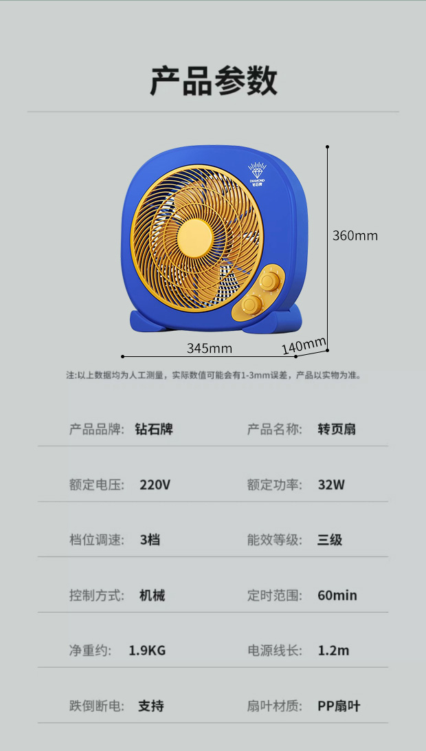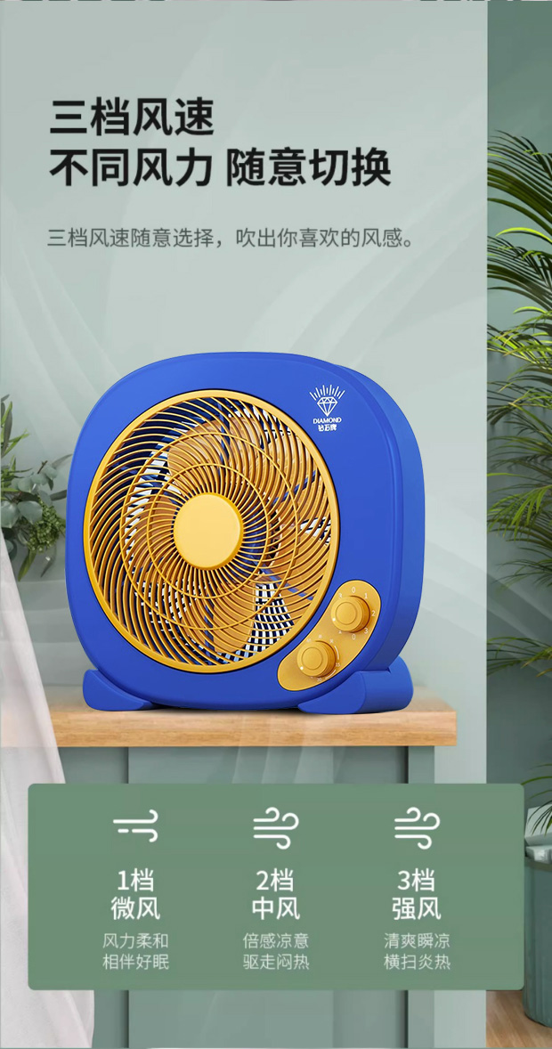 商品名称:钻石牌转页扇-蓝色DFS-250