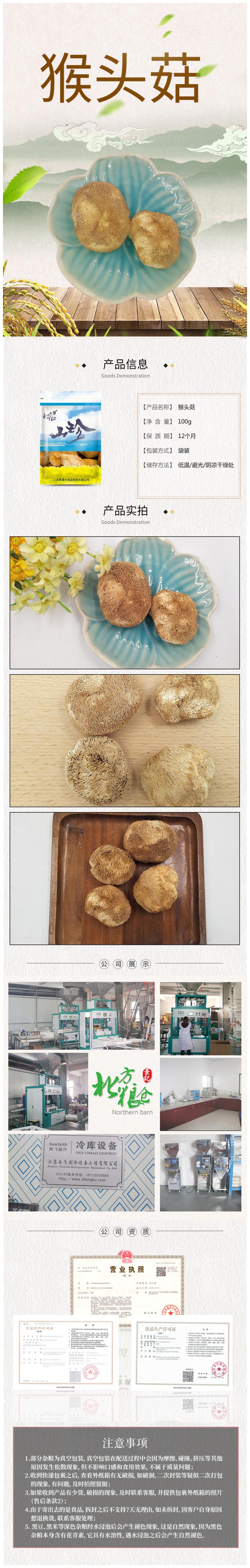 商品名称:北方粮仓山珍猴头菇100g*5袋