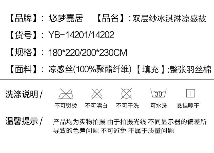 商品名称:悠梦嘉居双层纱冰淇淋凉感被子