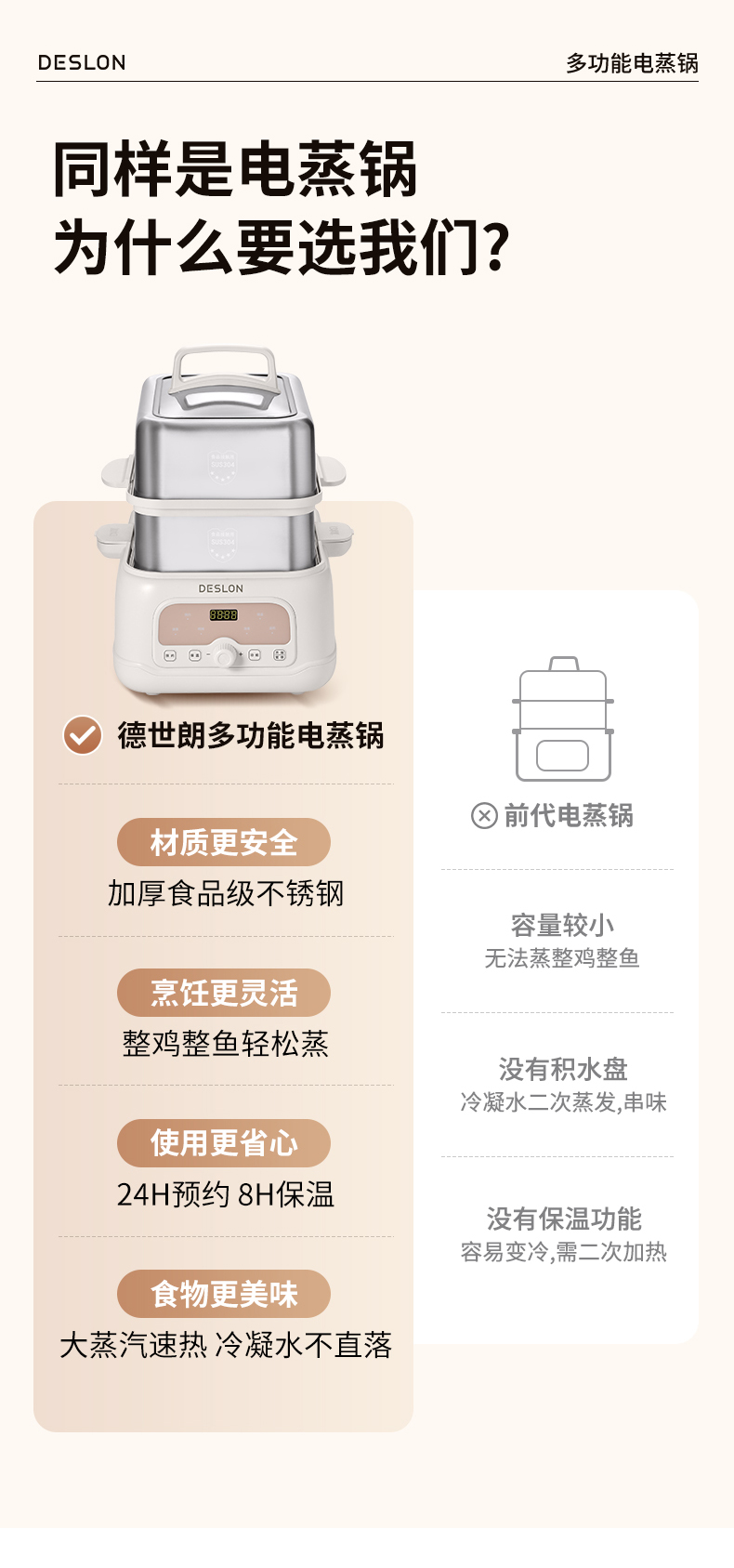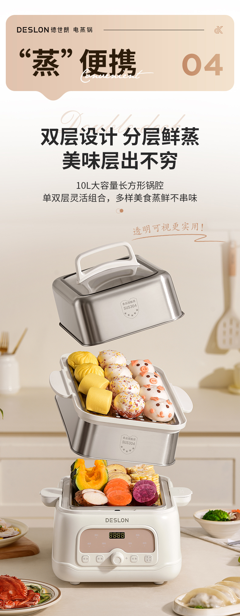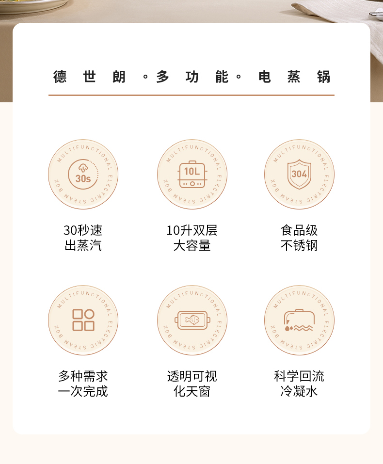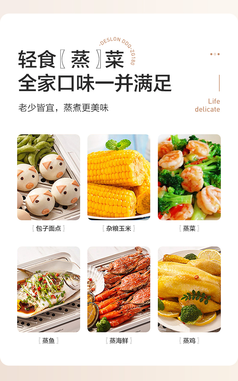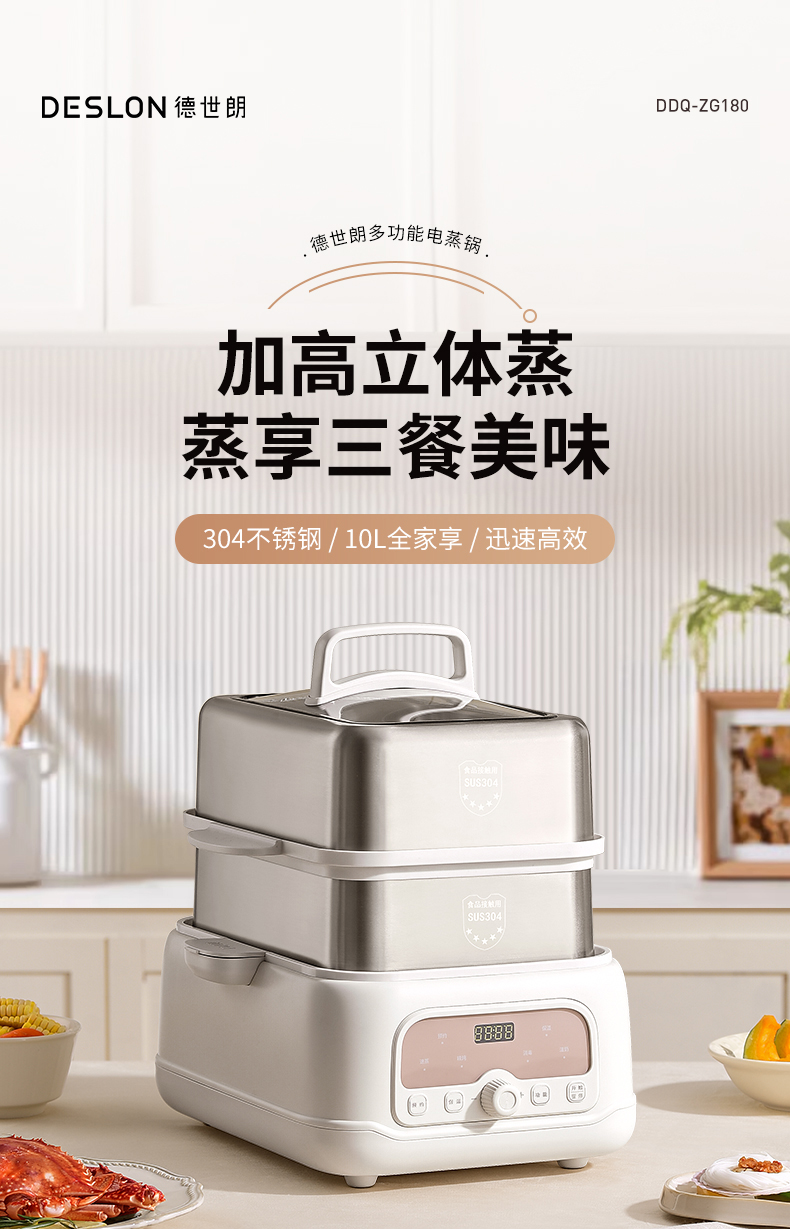 商品名称:DESLON/德世朗10升多功能电蒸锅DDQ-ZG180