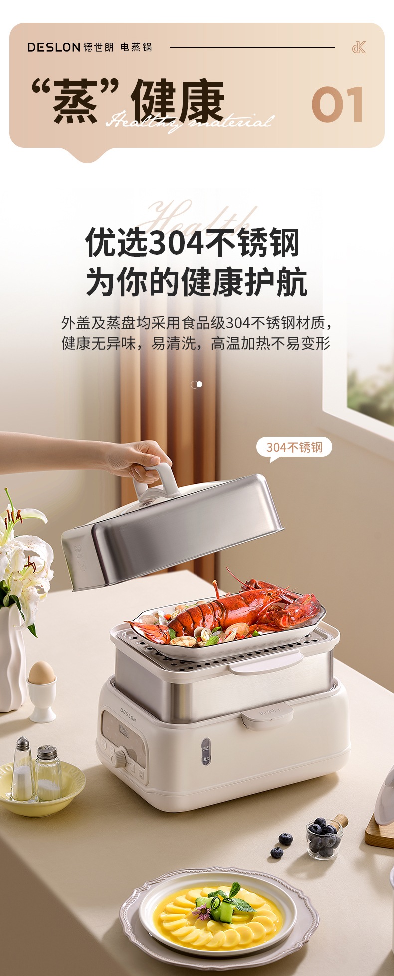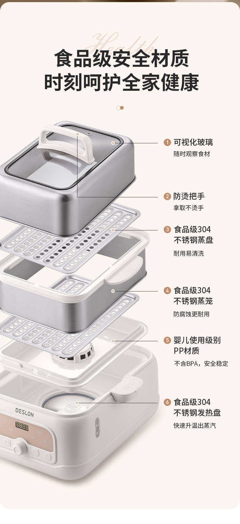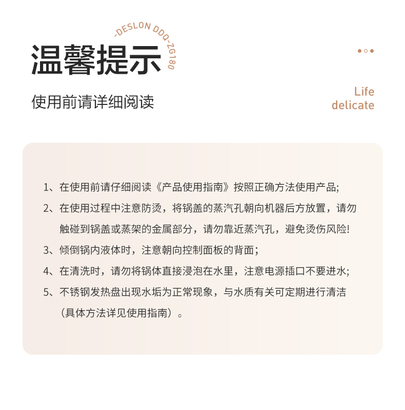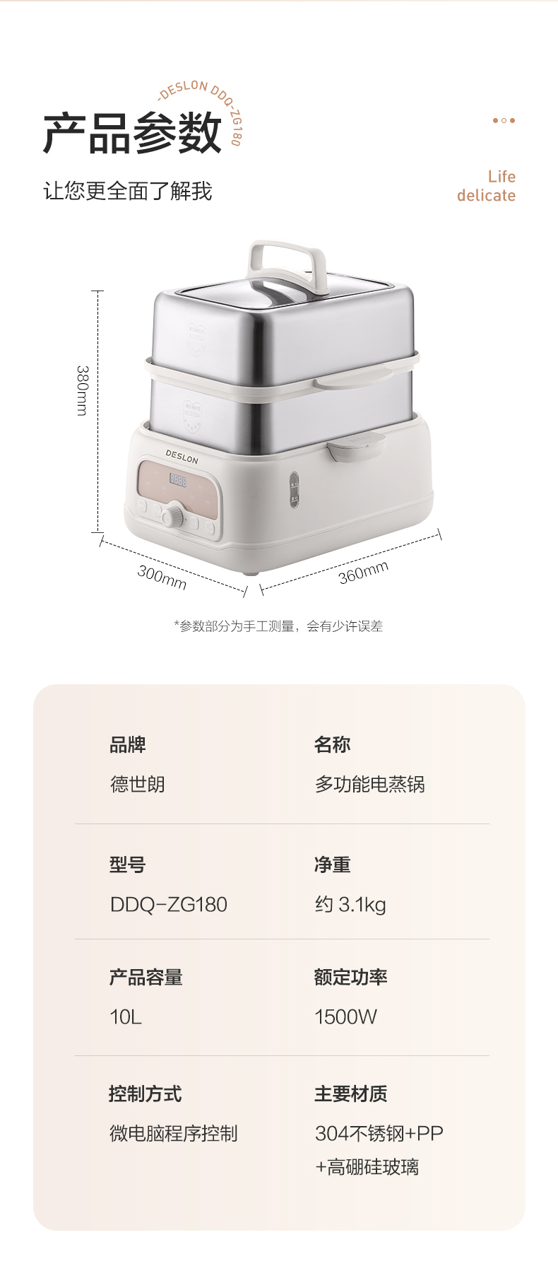 商品名称:DESLON/德世朗10升多功能电蒸锅DDQ-ZG180