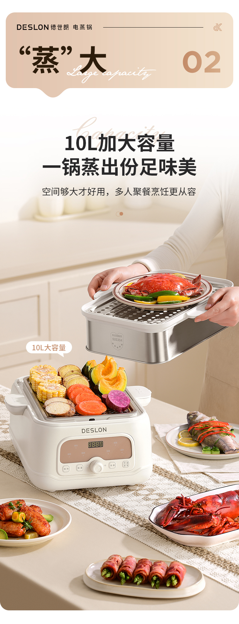 DESLON/德世朗10升多功能电蒸锅DDQ-ZG180
