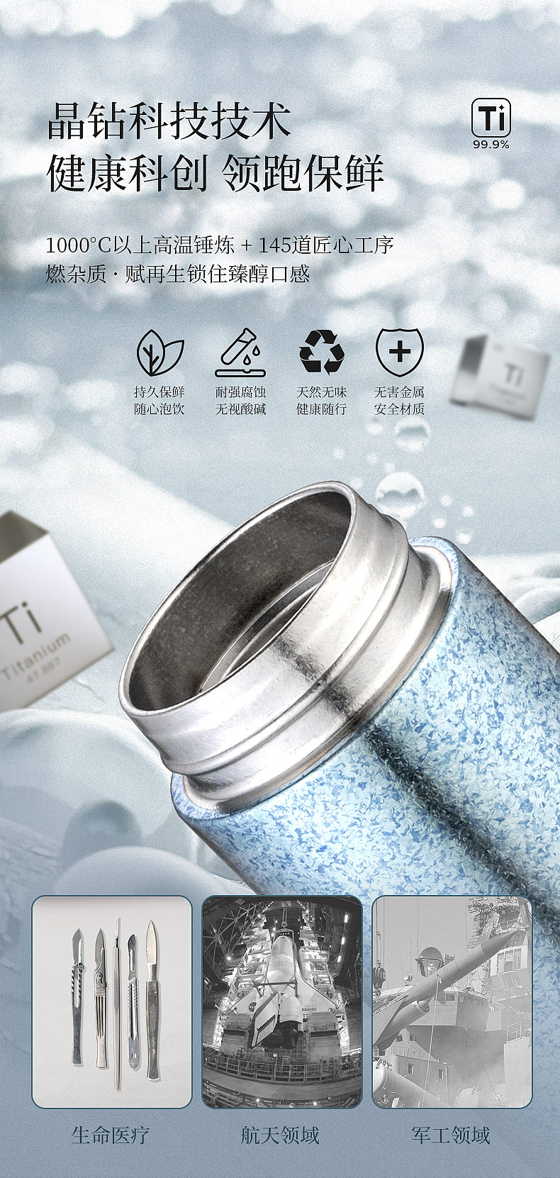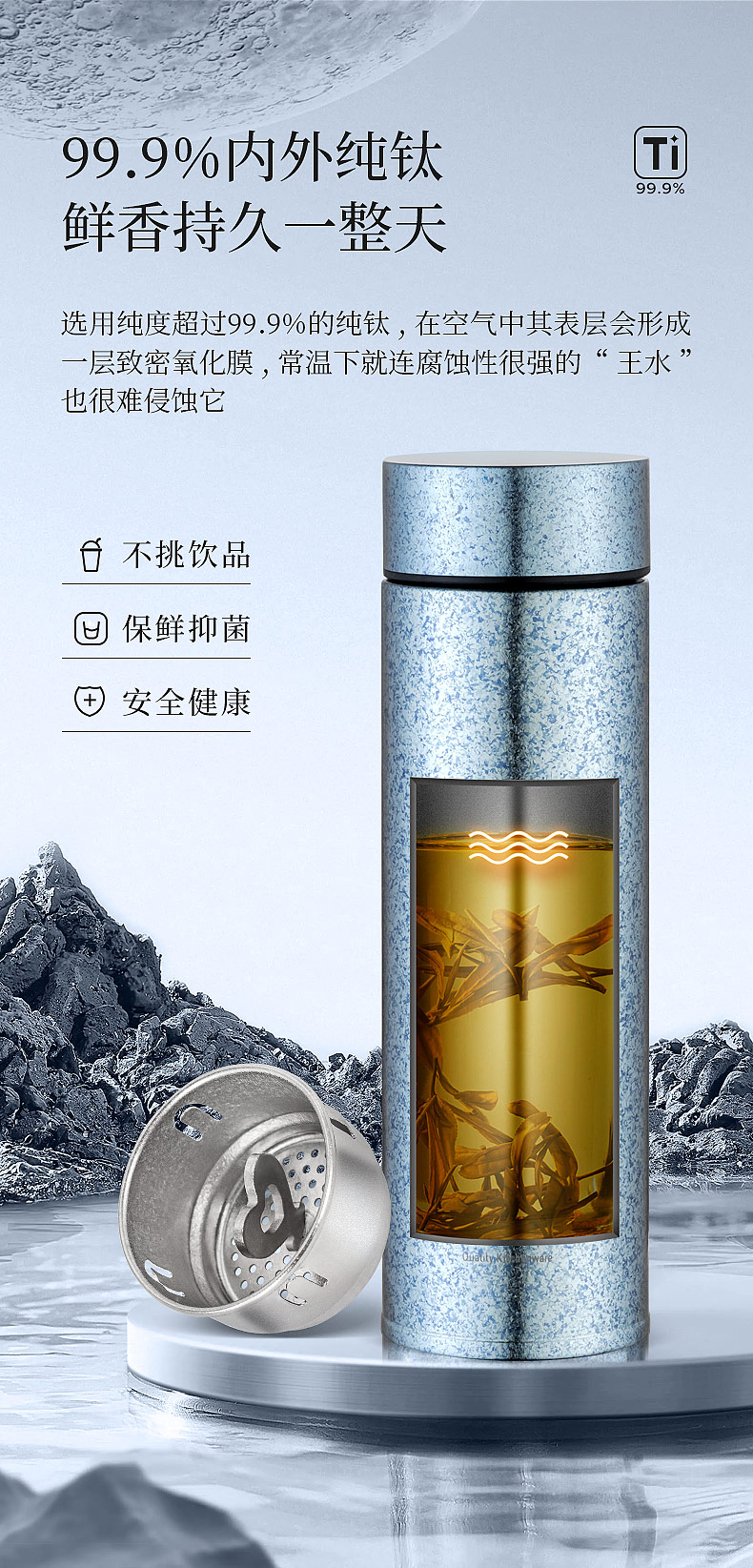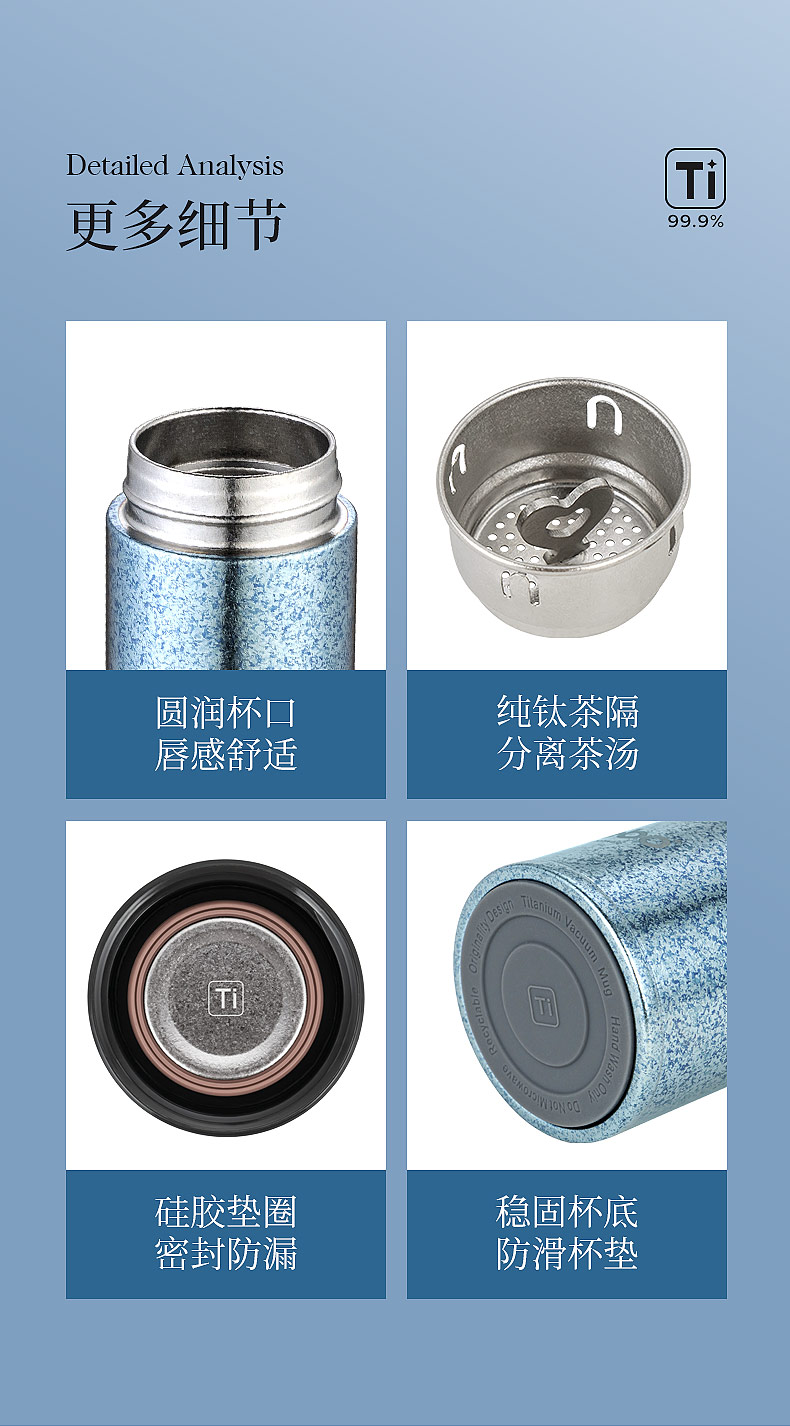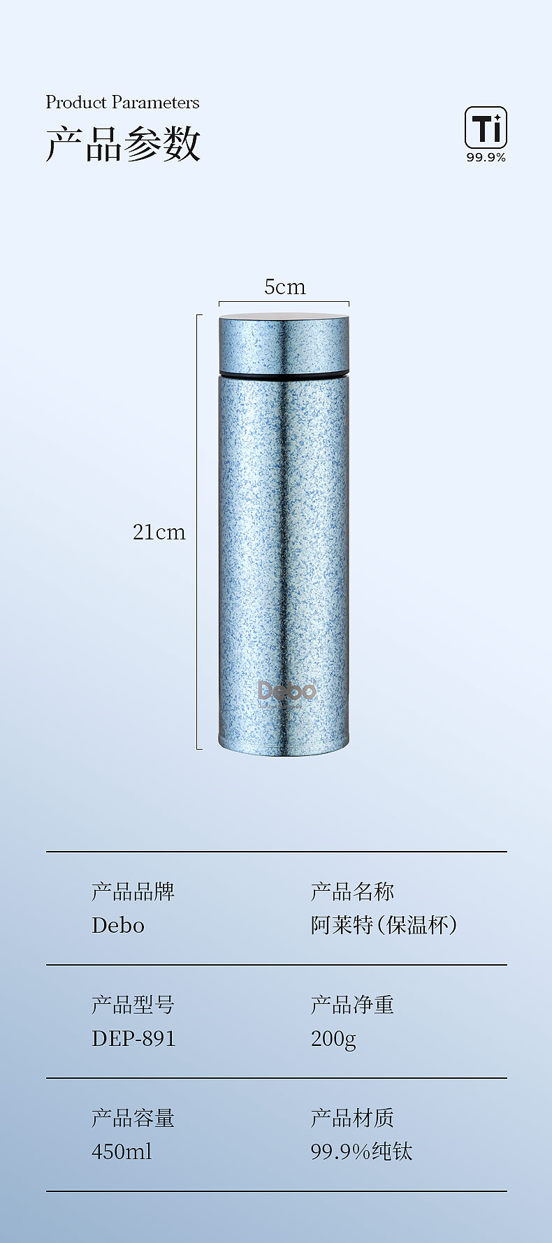 商品名称:Debo/德铂450毫升阿莱特钛保温杯DEP-891