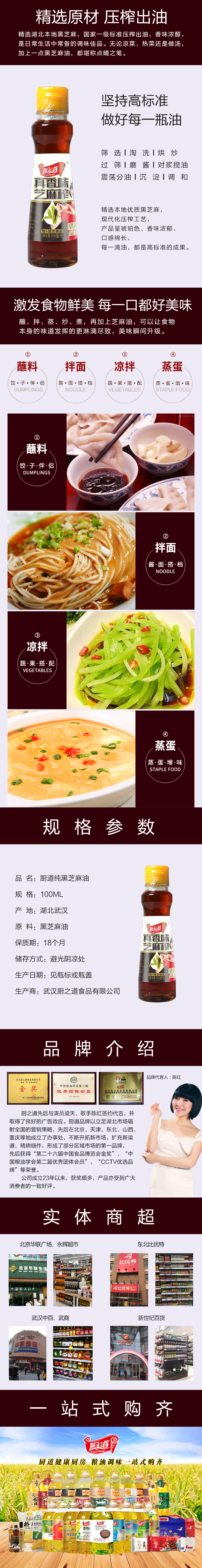 商品名称:Cook moral/厨道纯黑芝麻油100ml*6瓶