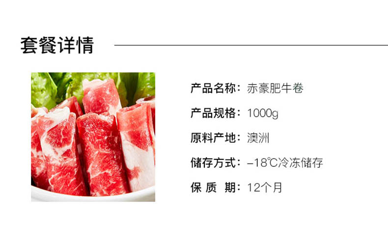 商品名称:【京东/顺丰配送】赤豪澳洲原切肥牛卷1000g