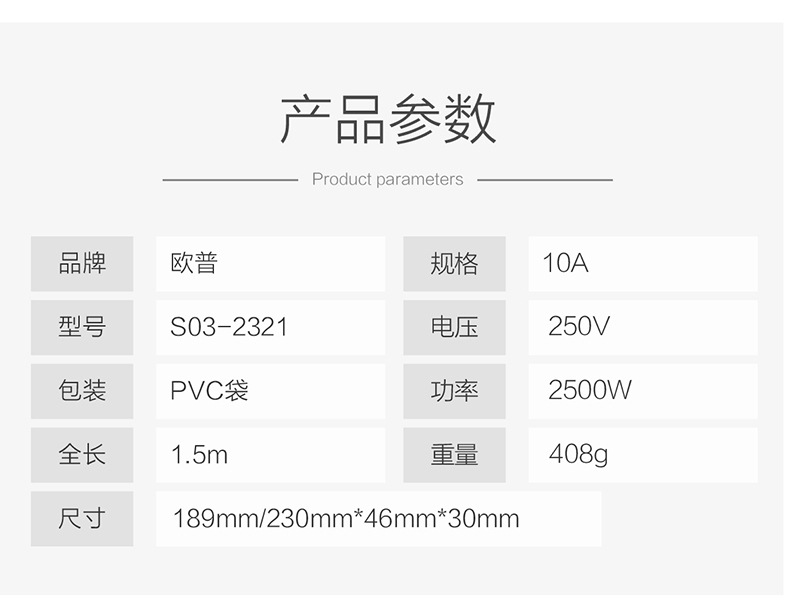 商品名称:OPPLE/欧普照明排插S03-2321