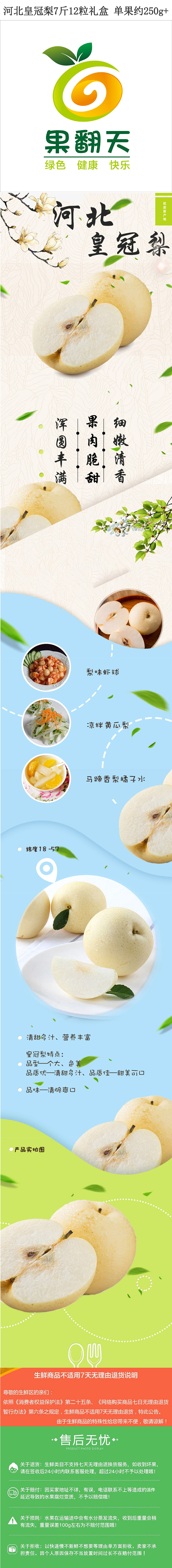 商品名称:果翻天河北皇冠梨7斤12粒礼盒 单果约250g+