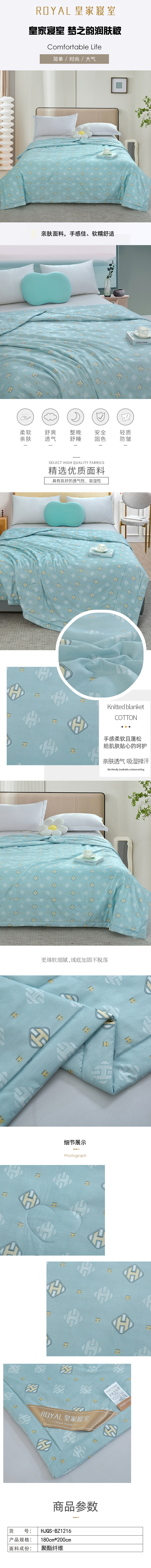 商品名称:ROYAL/皇家寝室梦之韵润肤被180*200cm 900g