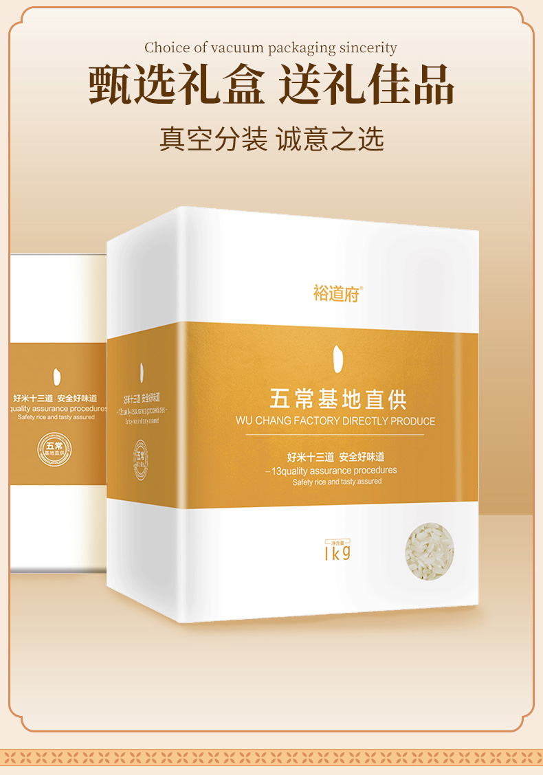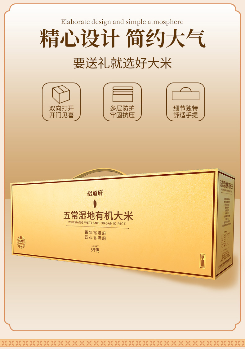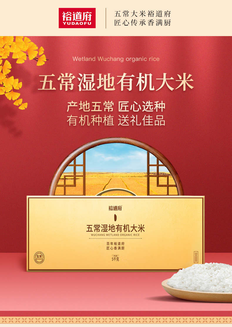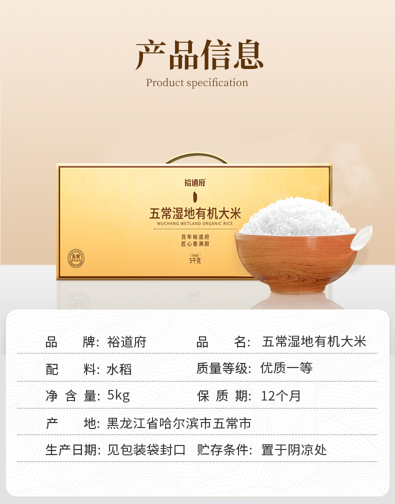 商品名称:裕道府五常湿地有机大米金色礼盒5kg