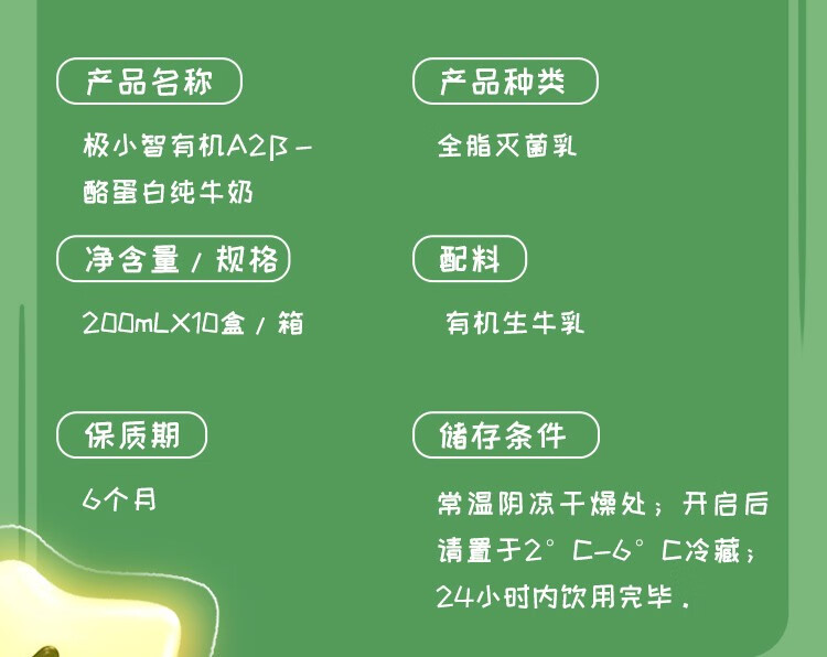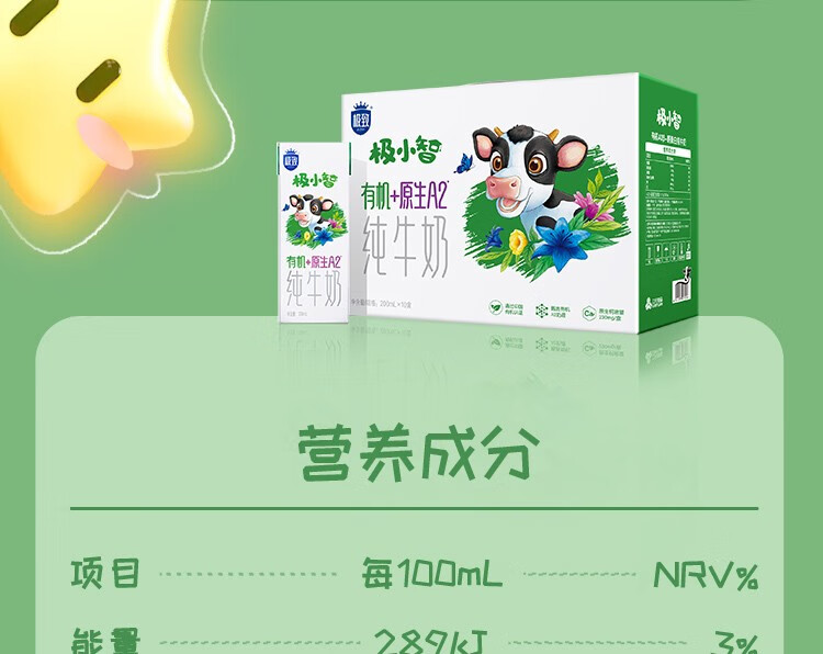 商品名称:三元极小智有机A2β酪蛋白纯牛奶整箱200ml*10盒