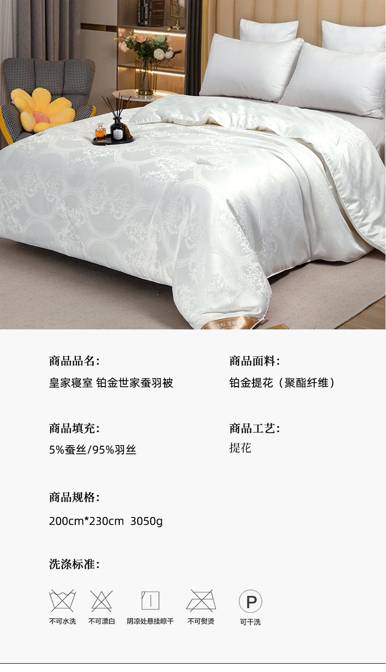 商品名称:ROYAL/皇家寝室铂金世家蚕羽被200*230cm 3050g