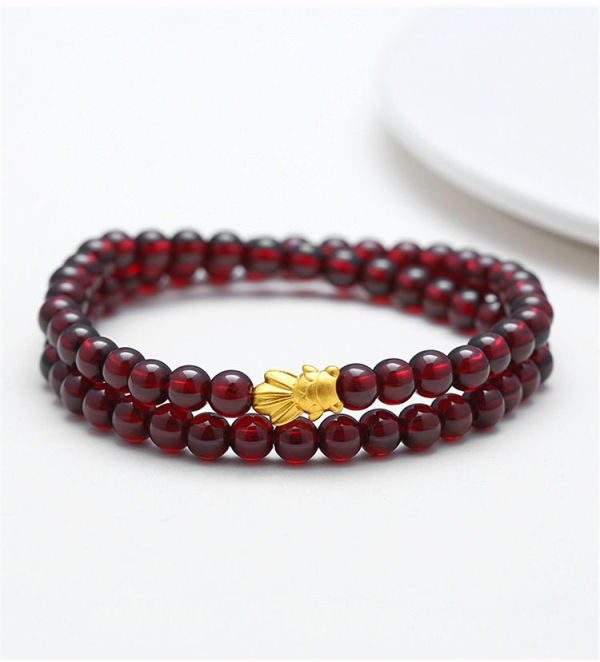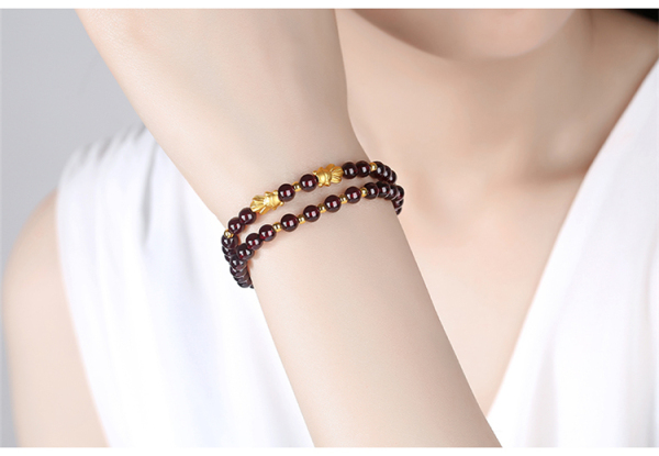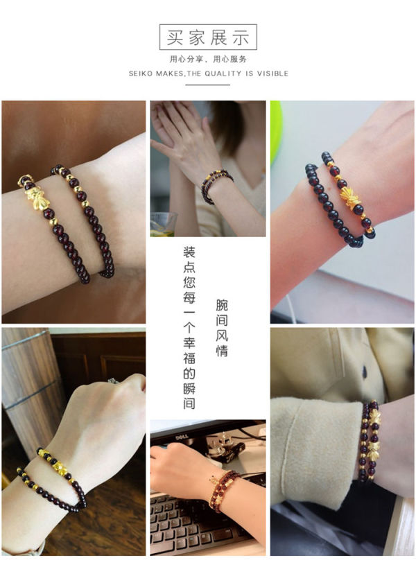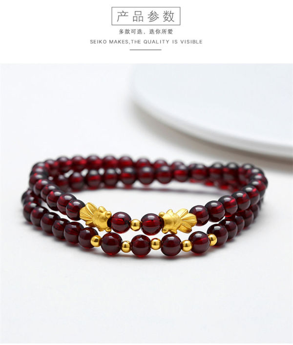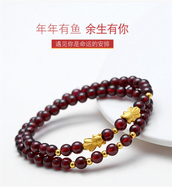 商品名称:佐禧佑福 999足金金鱼黄金手链3D硬金转运珠多圈天然5a级石榴石纯金手串 ZXSXSZMB105g-