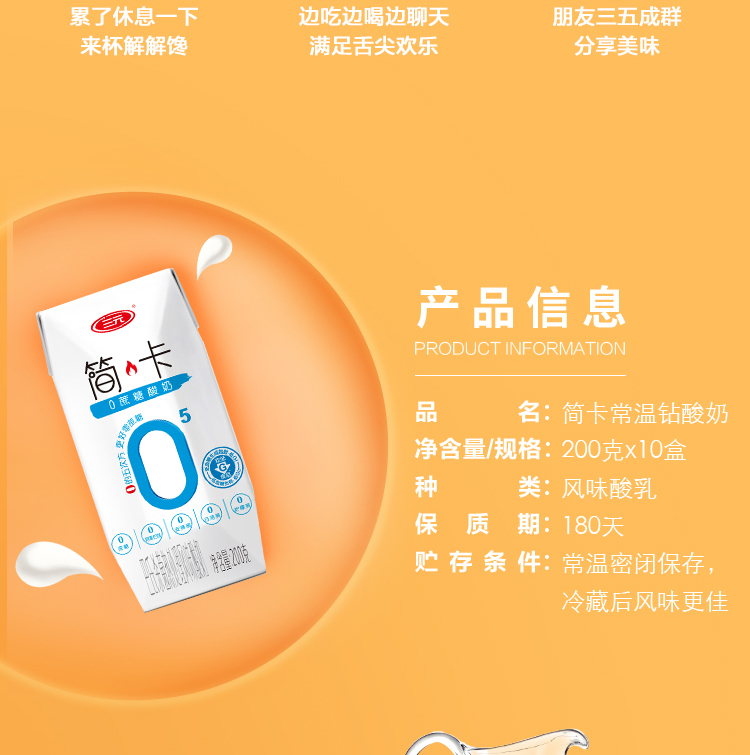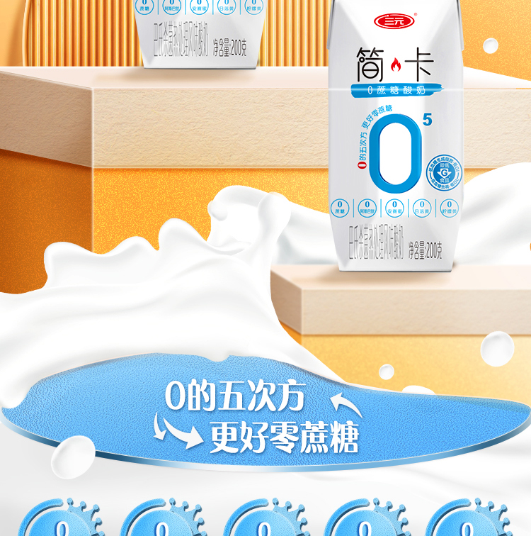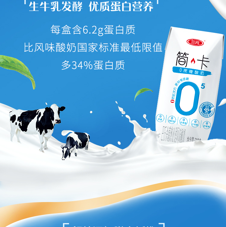 商品名称:三元简卡0蔗糖酸奶整箱200g*10盒