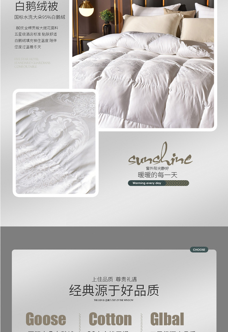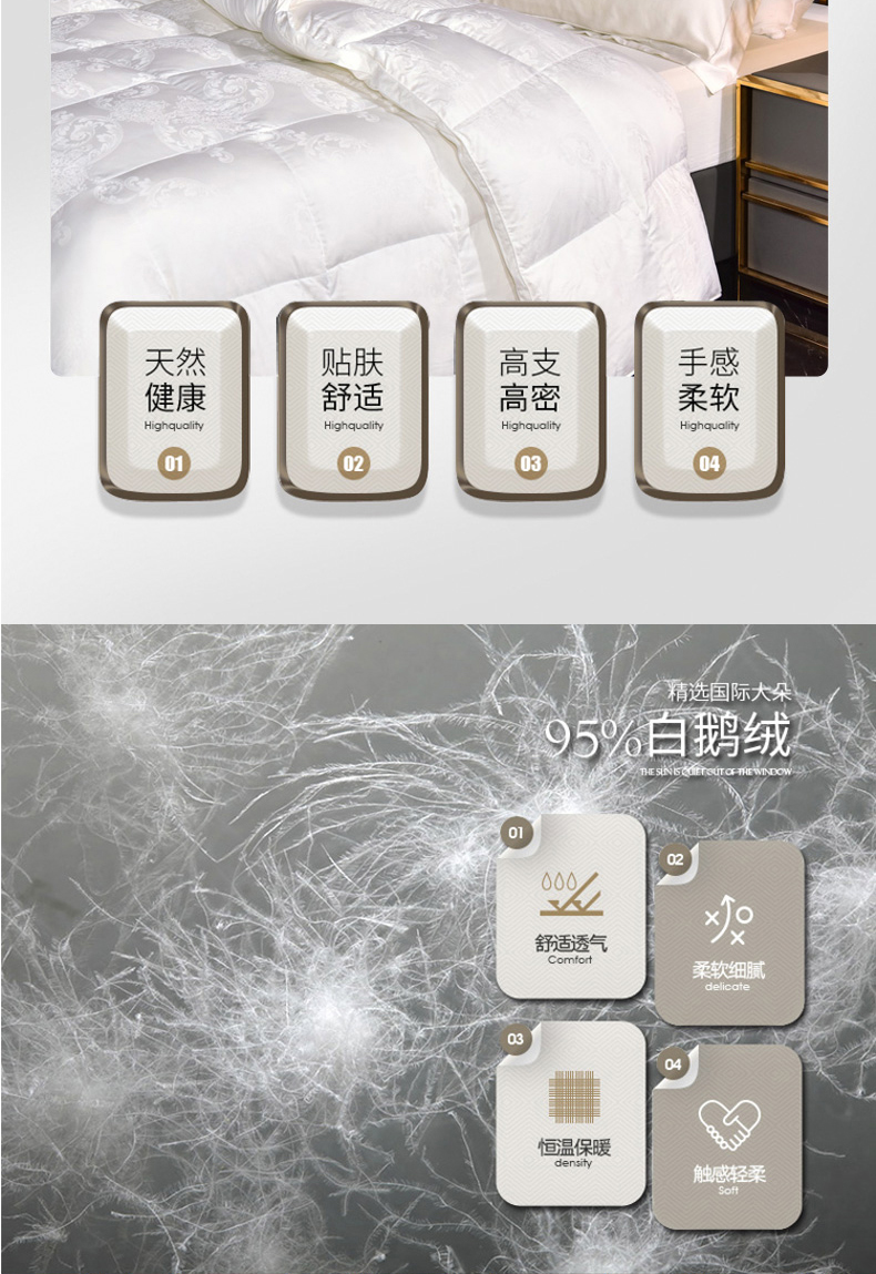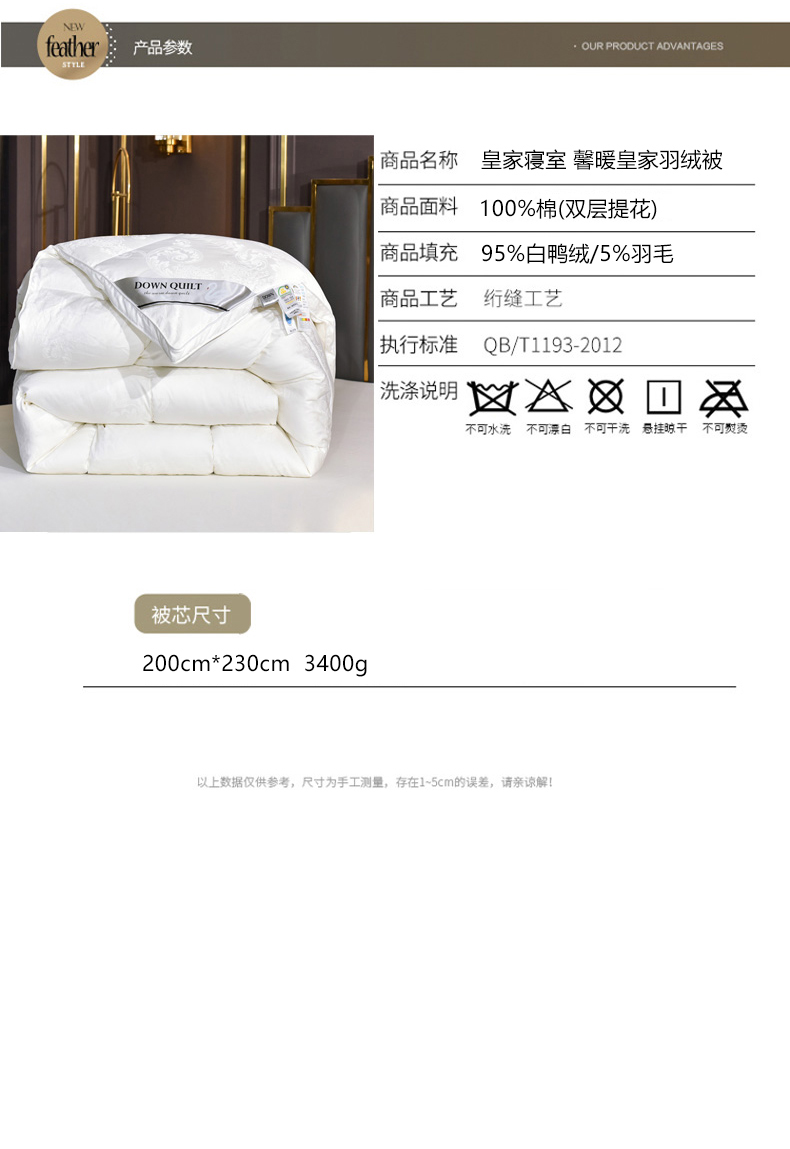 商品名称:ROYAL/皇家寝室馨暖皇家羽绒被200*230cm 3400g