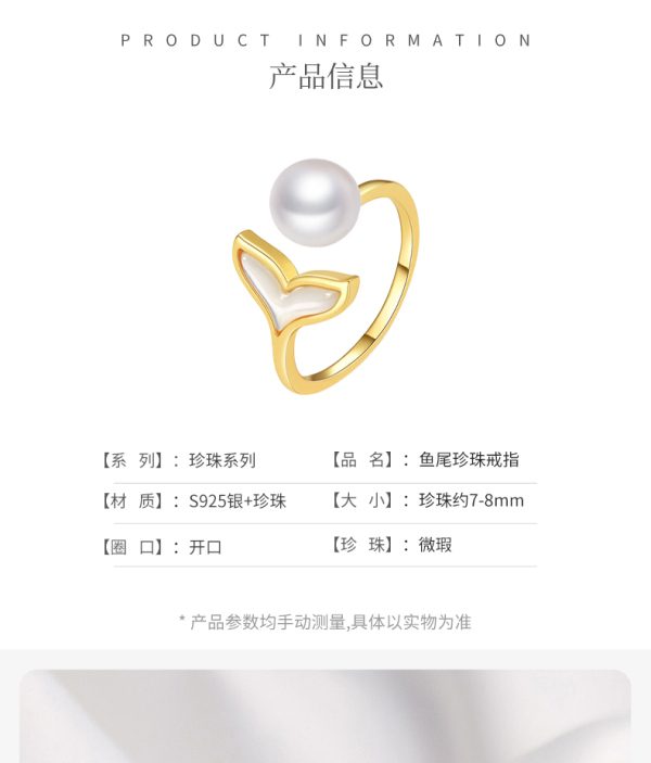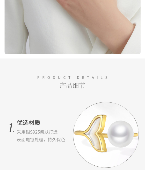 商品名称:ALLOVE S925银鱼尾珍珠戒指GHD01859